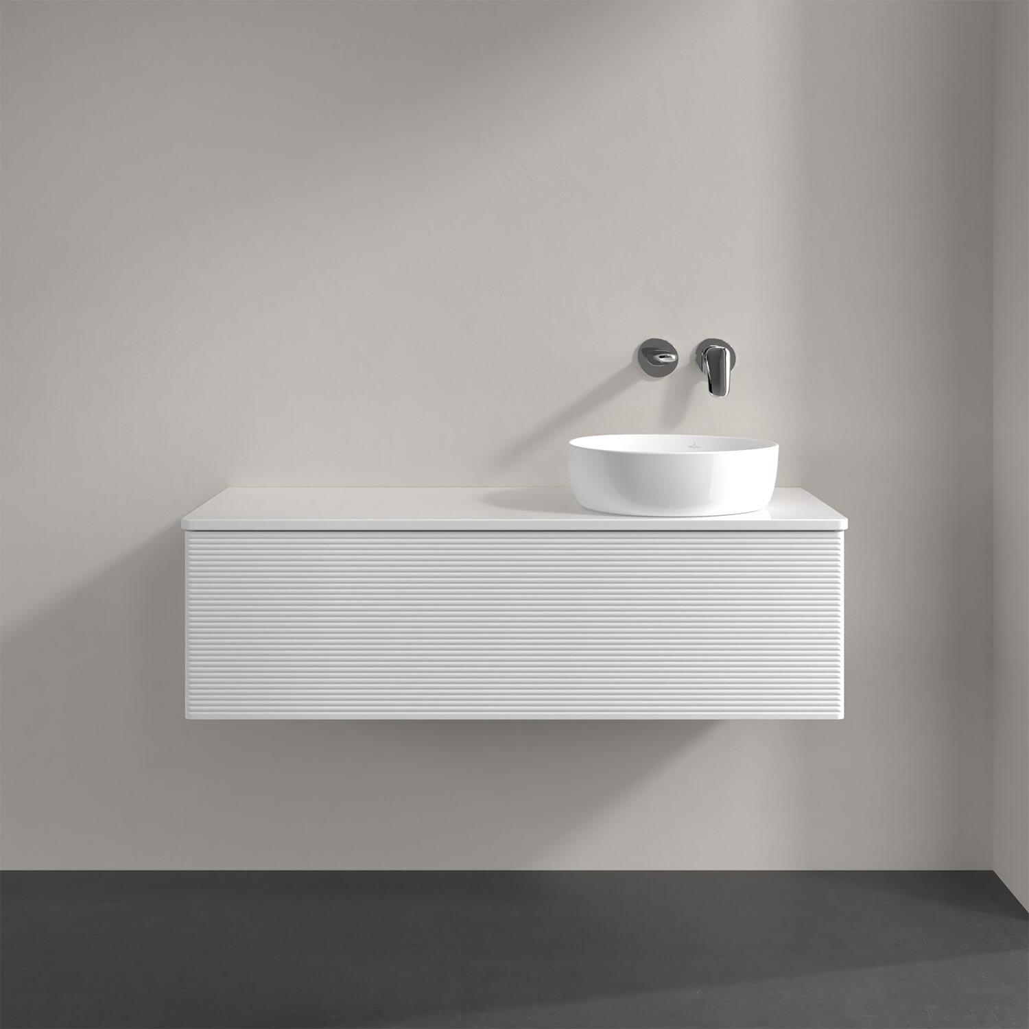 Villeroy & Boch Antao Waschbeckenunterschrank, 120 x 36 cm, 1 Auszug mit LED-Licht, Front mit Struktur, ohne Hahnloch, für Waschtisch rechts