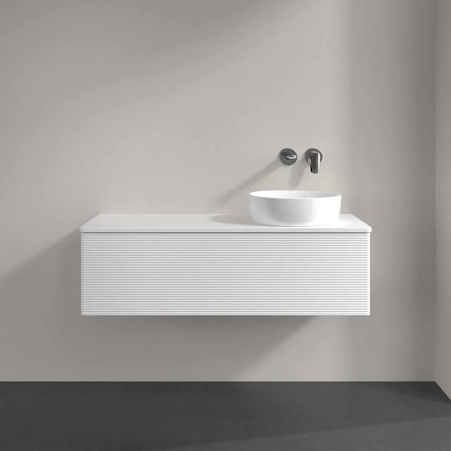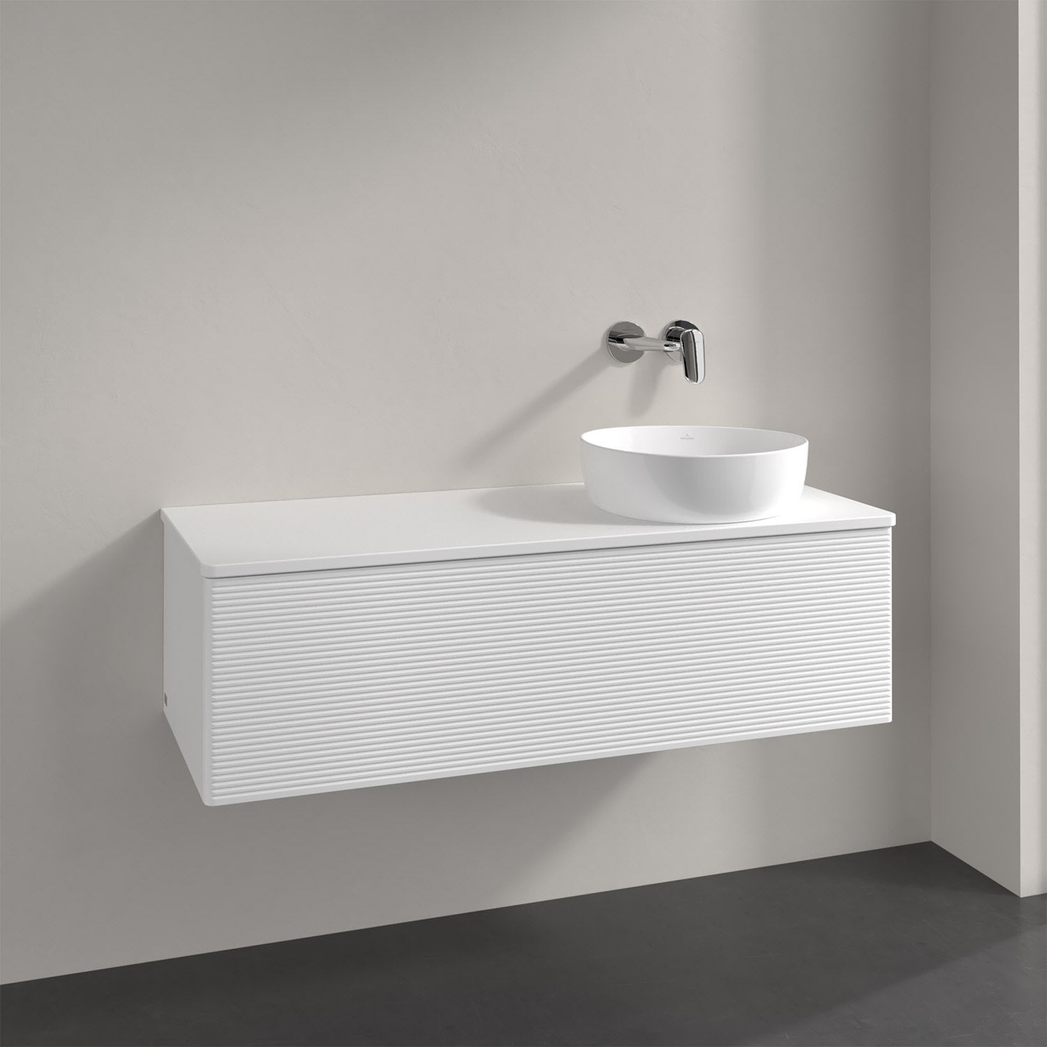 Villeroy & Boch Antao Waschbeckenunterschrank, 120 x 36 cm, 1 Auszug mit LED-Licht, Front mit Struktur, ohne Hahnloch, für Waschtisch rechts