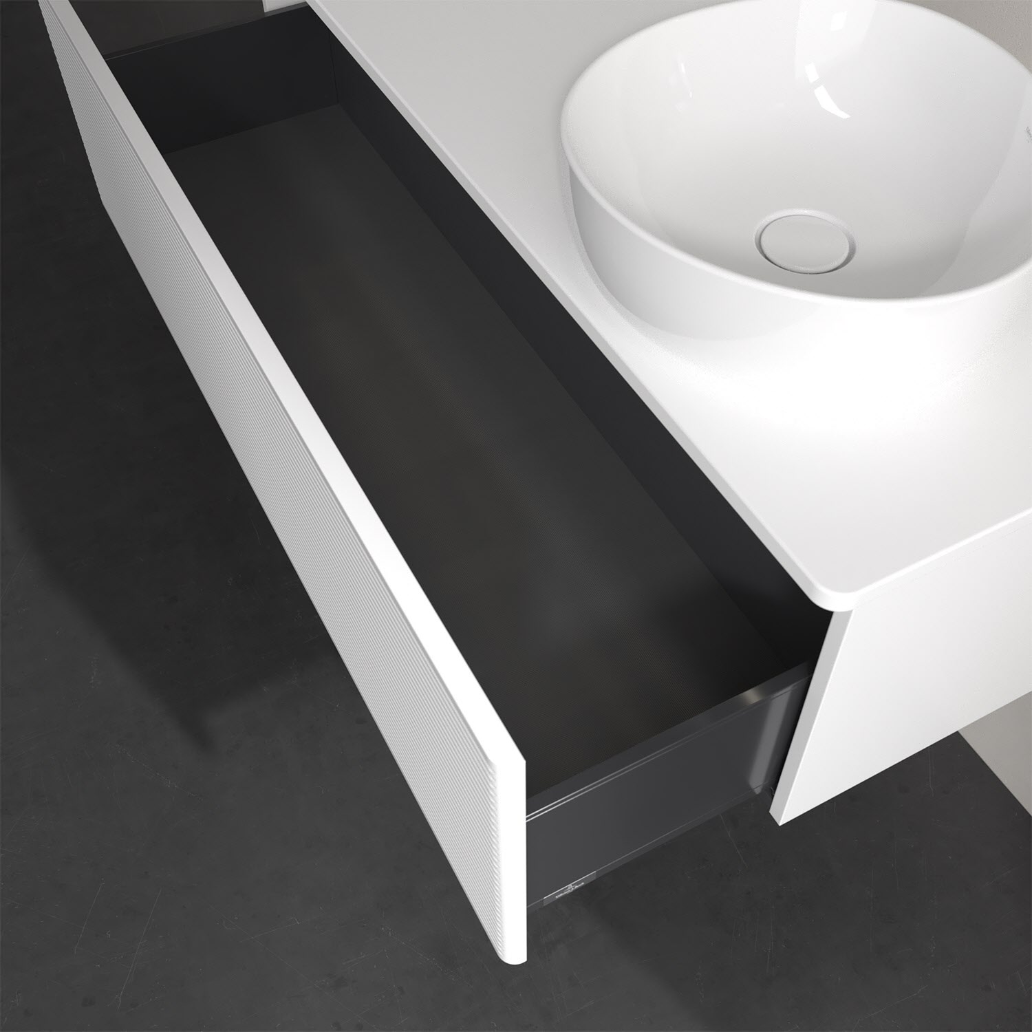 - kein Umfallen oder Verrutschen von Pflegeprodukten in den Schubladen dank rutschhemmendem Boden