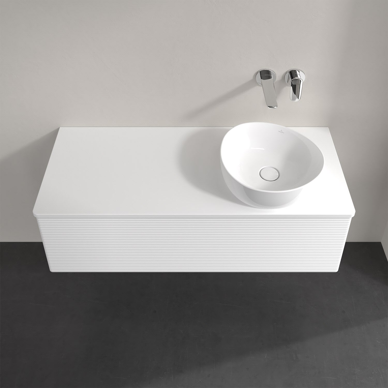 Für diesen Waschbeckenunterschrank stehen Ihnen Aufsatzwaschtische aus verschiedenen Serien zur Verfügung (siehe "Passliste" unter Downloads). Ein ausgewähltes Beispiel finden Sie im Zubehör. Den Waschtisch bitte separat mitbestellen.