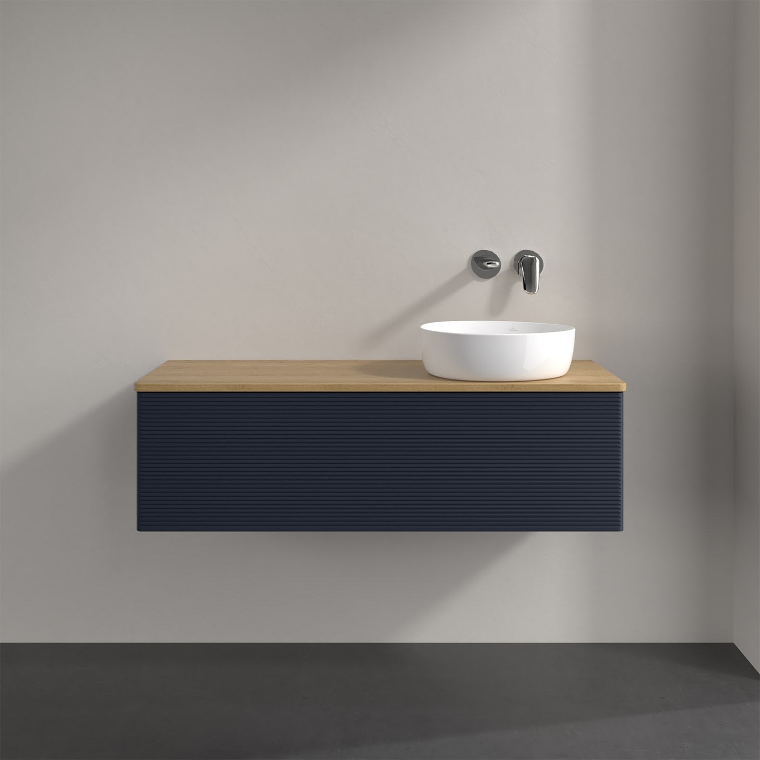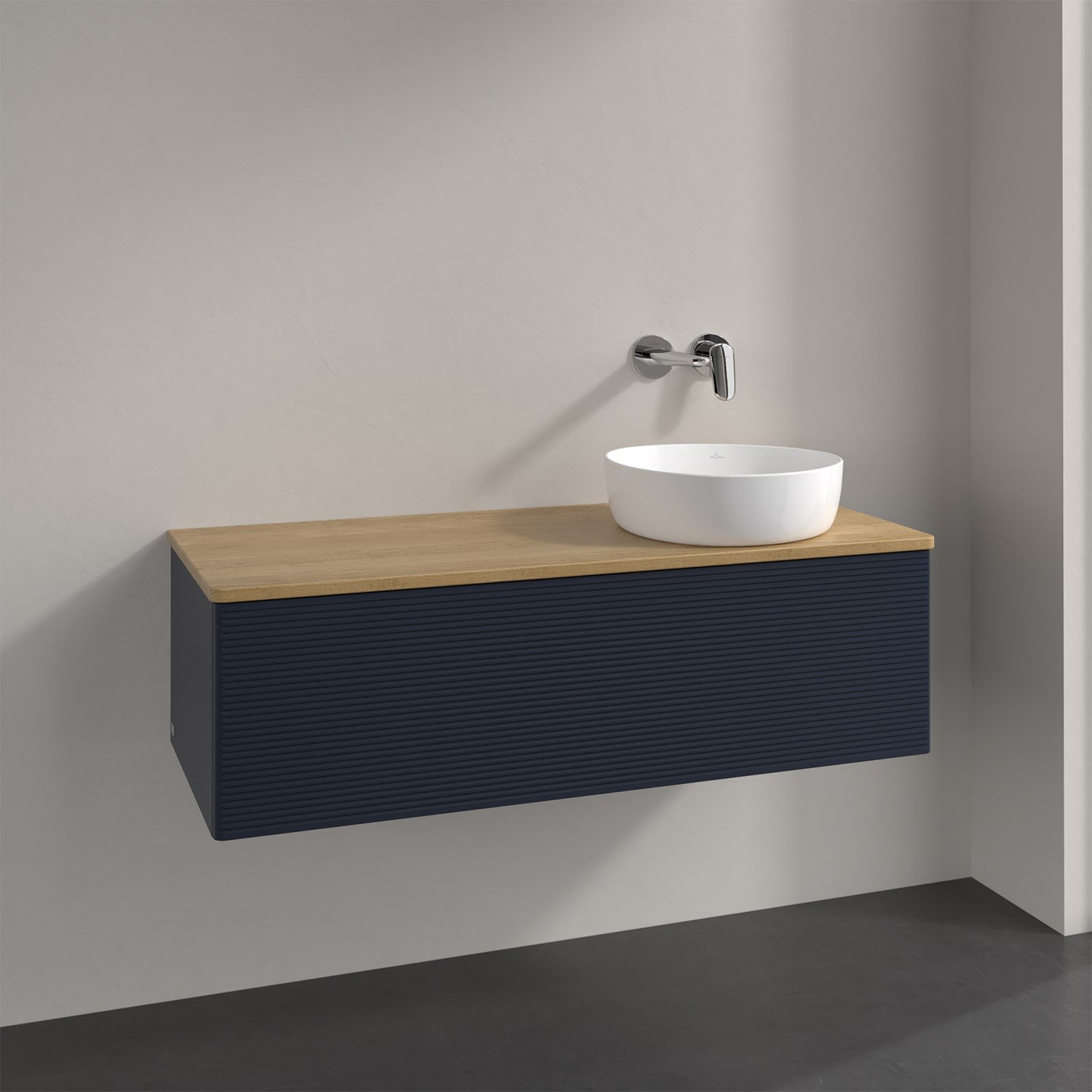 Villeroy & Boch Antao Waschbeckenunterschrank, 120 x 36 cm, 1 Auszug mit LED-Licht, Front mit Struktur, ohne Hahnloch, für Waschtisch rechts
