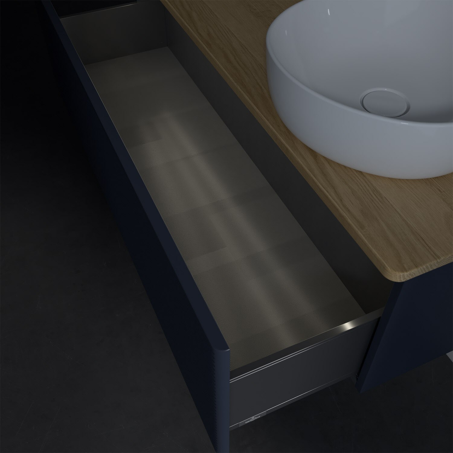 - in Schublade integrierte LED-Leiste mit warmweißem Licht zur Beleuchtung des Innenlebens