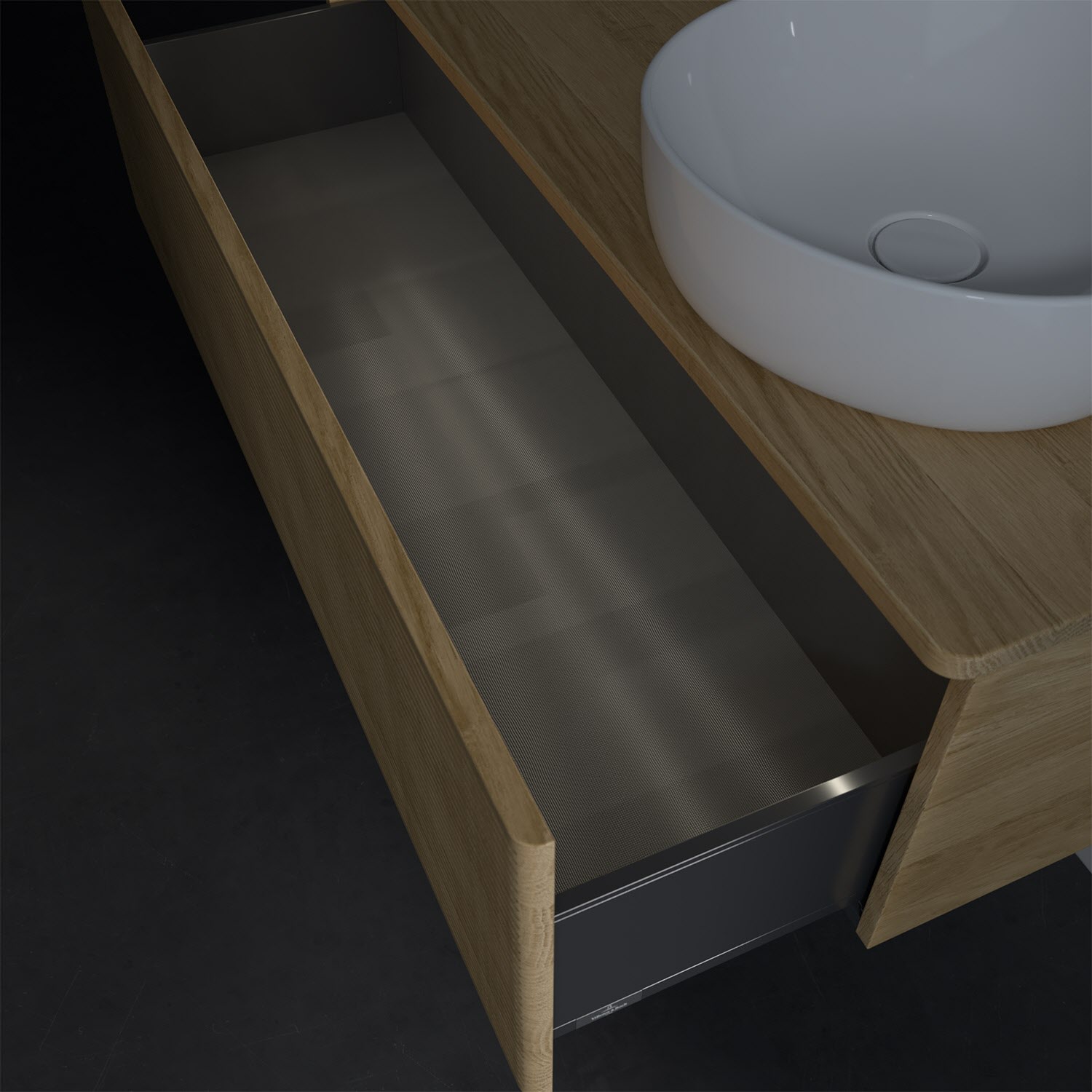 Der wandhängende Antao Waschtischunterschrank von Villeroy & Boch bietet nicht nur jede Menge Stauraum – er ist dank seines naturinspirierten Designs mit seinen abgerundeten Kanten auch noch besonders stilvoll und schafft eine gemütliche Atmosphäre im Badezimmer. Auf der Waschtischplatte bietet sich seitlich des Waschtischs viel Platz für Zahnbürstenbecher oder Seifenspender. Ein extra hoher Auszug bietet viel Platz, um alles Notwendige zu verstauen und Ordnung zu halten. Öffnen lässt er sich durch leichten Druck auf die strukturierte Front. Dabei aktiviert sich übrigens die Auszugsbeleuchtung in angenehmem Warmweiß. Dank Vollauszug hat man immer alles im Blick und der Antirutschboden verhindert ein Umfallen oder Verrutschen der Gegenstände. Einfach clever! Für eine besonders leichte Pflege sorgt die mehrschichtig deckend lackierte Oberfläche. Bei der Ausführung in Massivholz wird dank des verarbeiteten Massivholzes jedes Möbel zu einem Unikat, das sich durch das lebendige Naturmaterial durch seine einzigartige Struktur und Maserung auszeichnet.