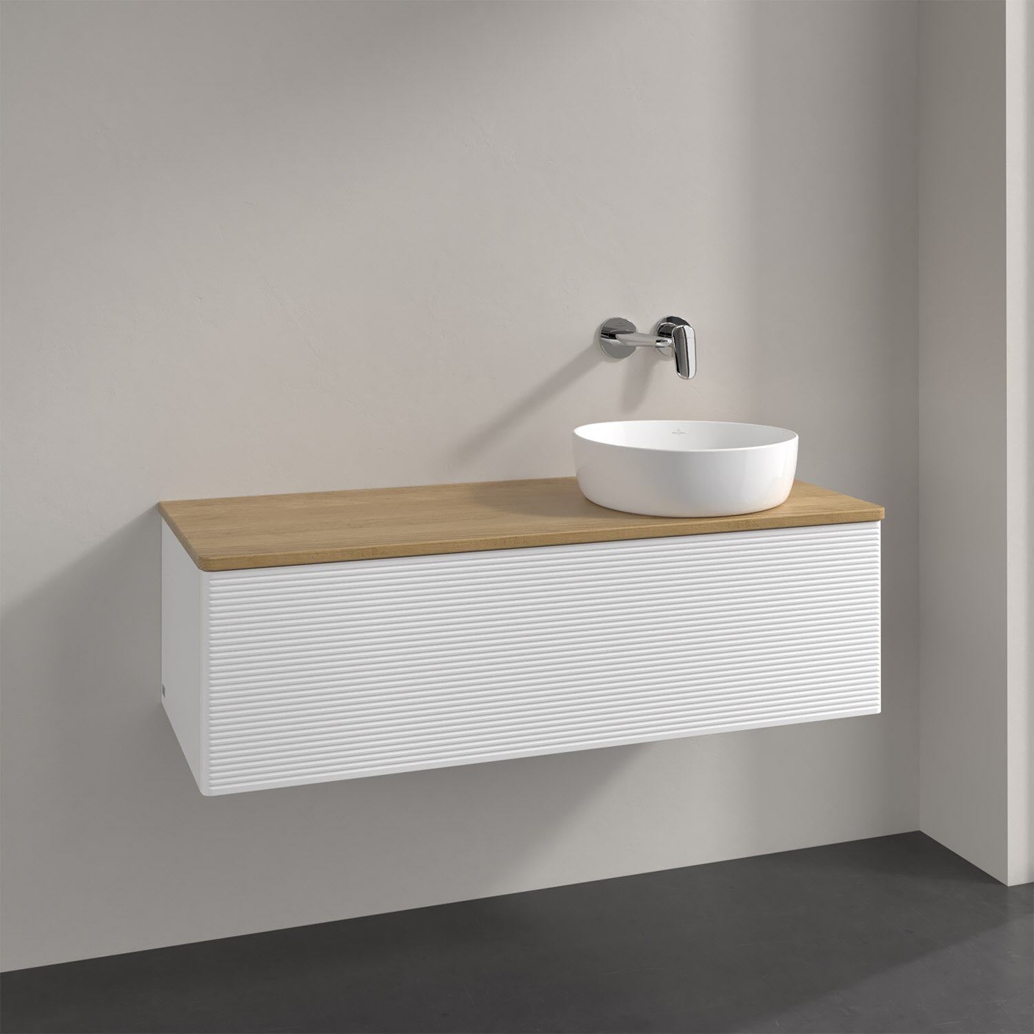 Villeroy & Boch Antao Waschbeckenunterschrank, 120 x 36 cm, 1 Auszug mit LED-Licht, Front mit Struktur, ohne Hahnloch, für Waschtisch rechts