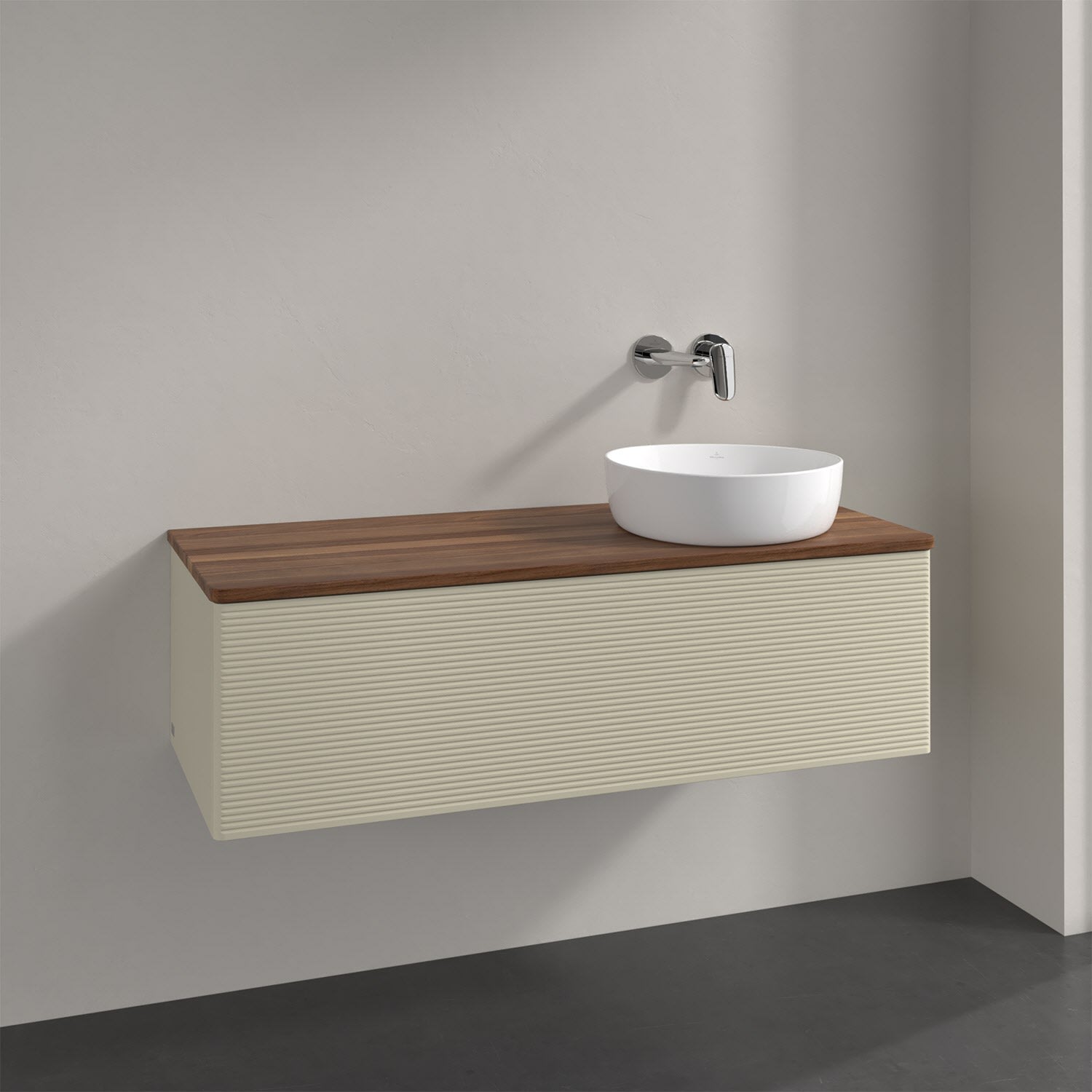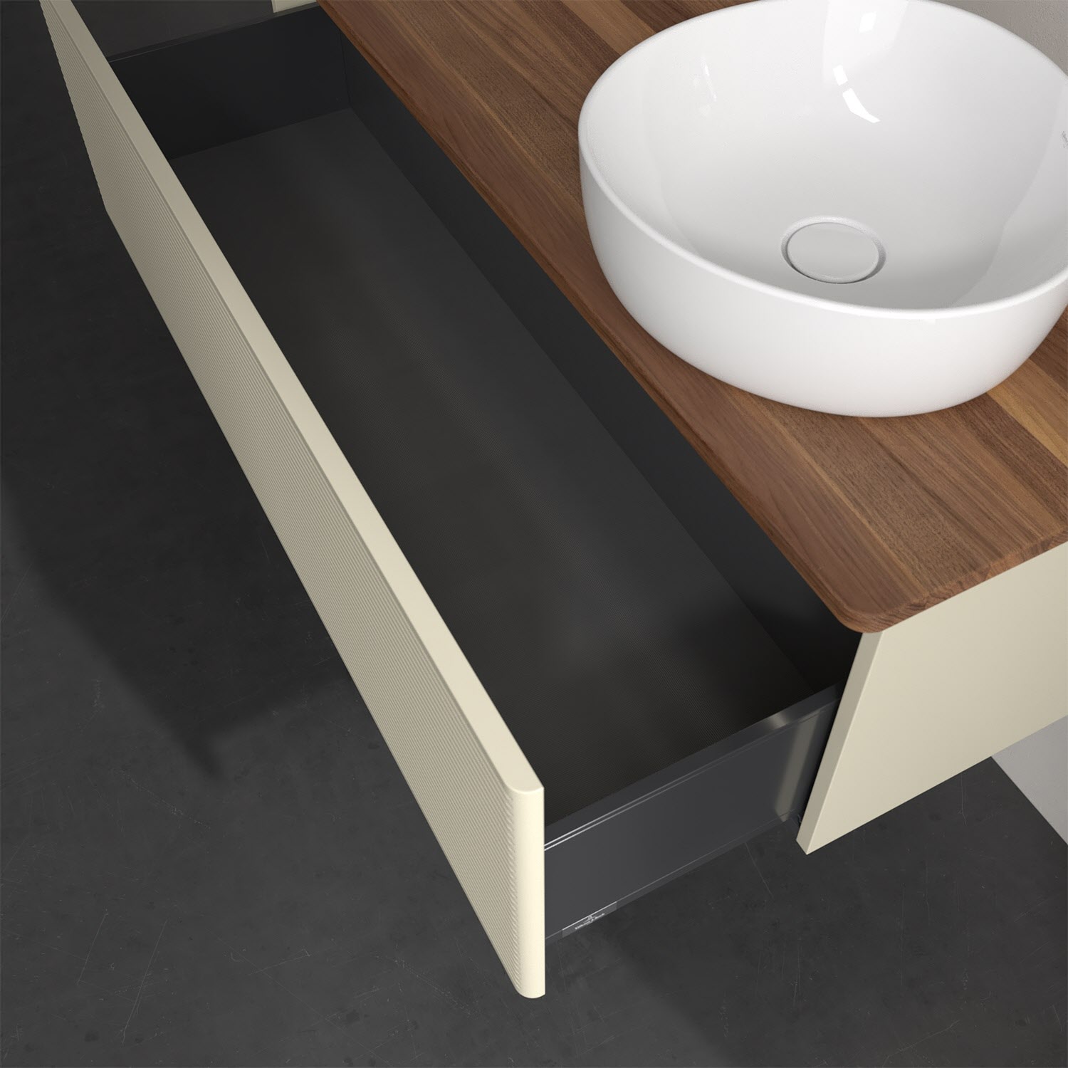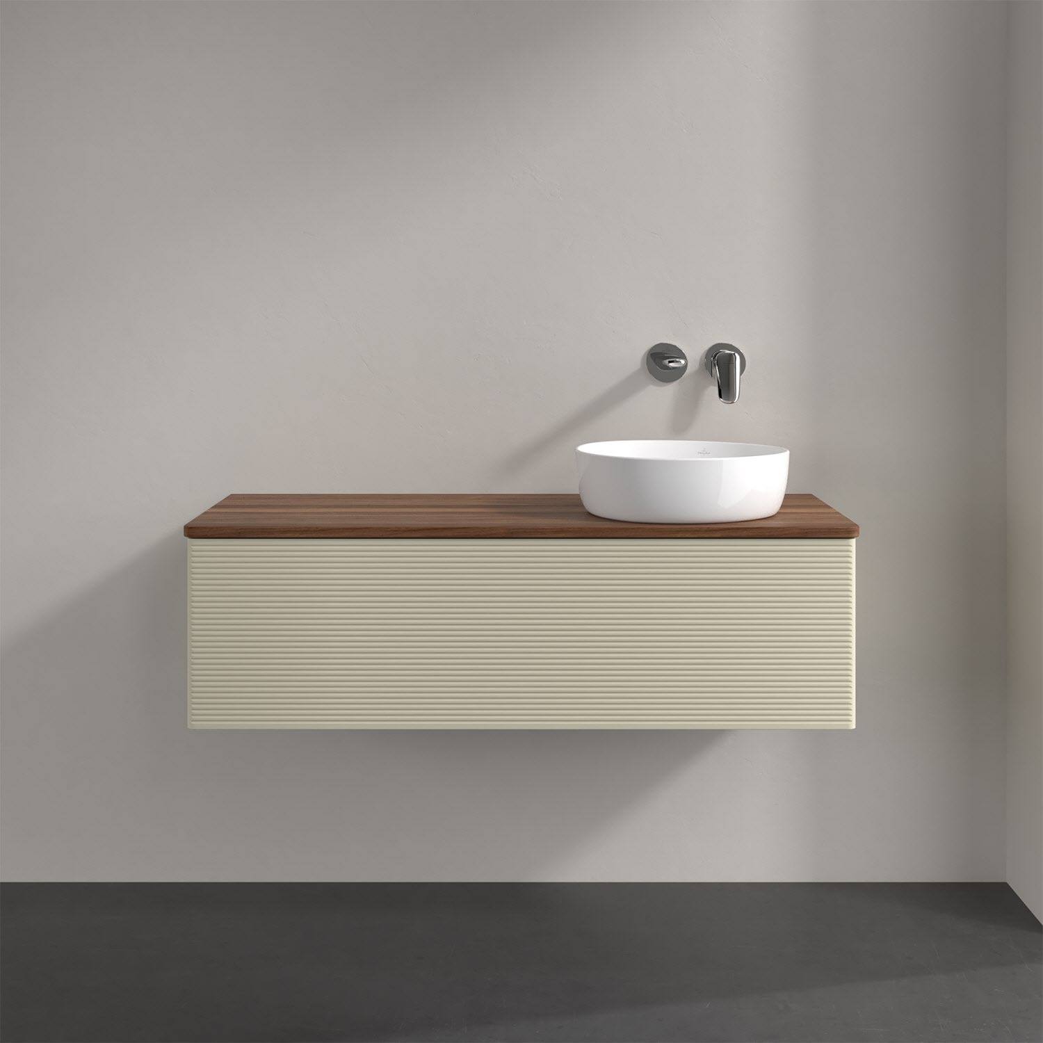 Villeroy & Boch Antao Waschbeckenunterschrank, 120 x 36 cm, 1 Auszug mit LED-Licht, Front mit Struktur, ohne Hahnloch, für Waschtisch rechts