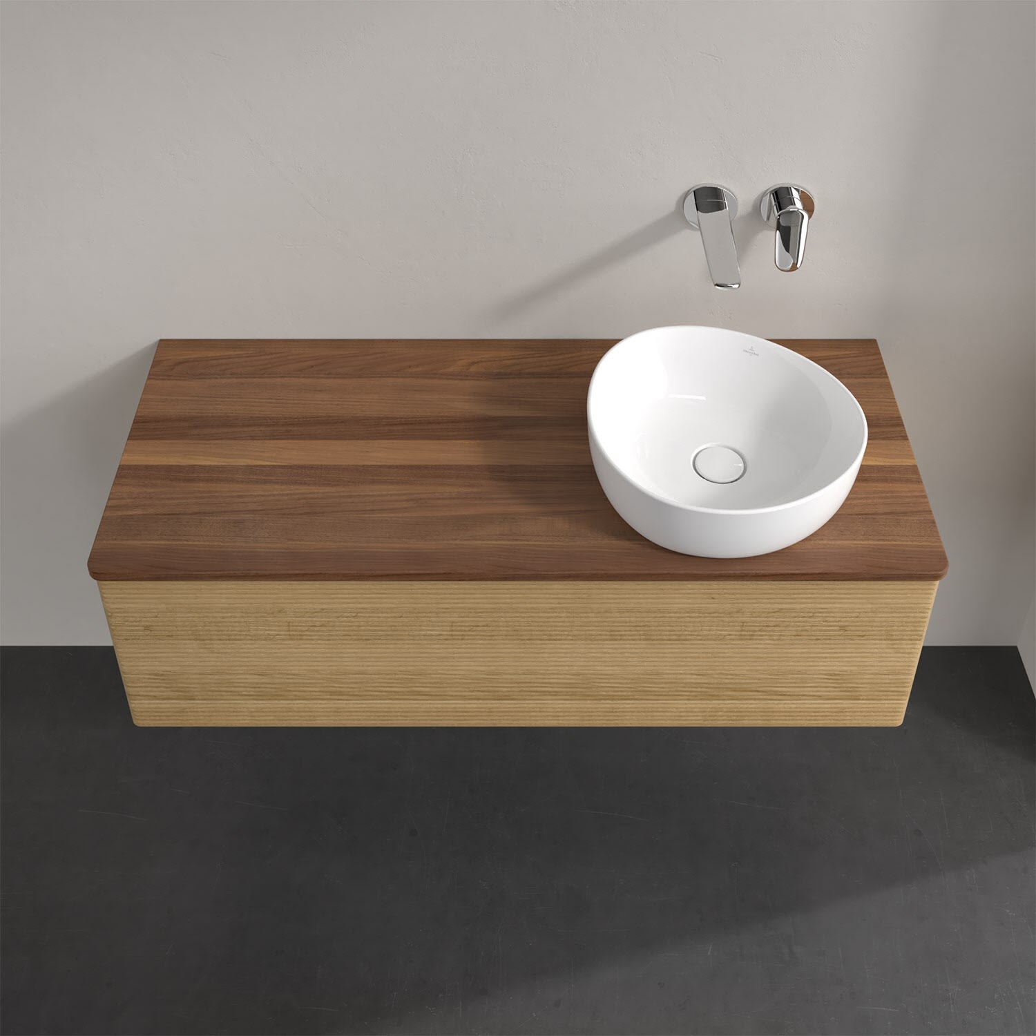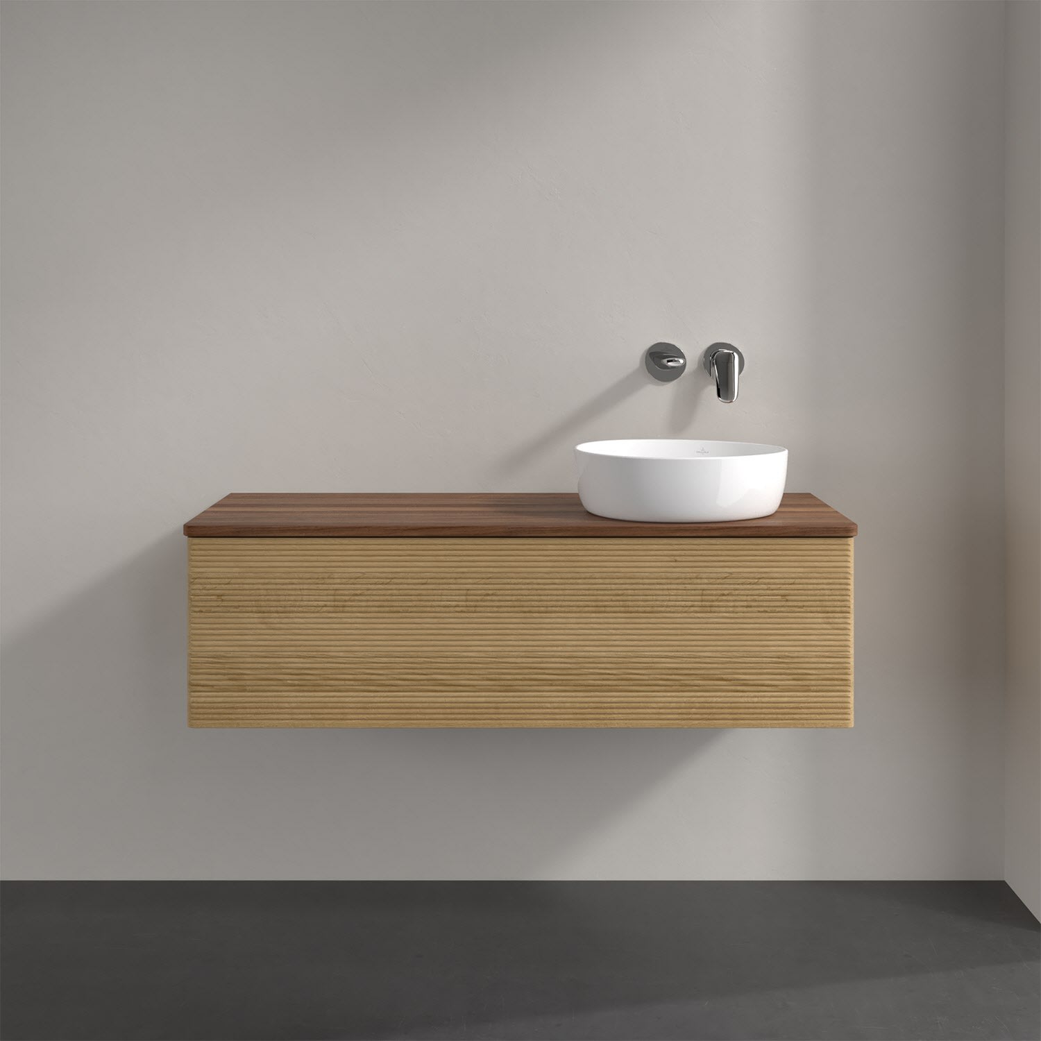 Villeroy & Boch Antao Waschbeckenunterschrank, 120 x 36 cm, 1 Auszug mit LED-Licht, Front mit Struktur, ohne Hahnloch, für Waschtisch rechts