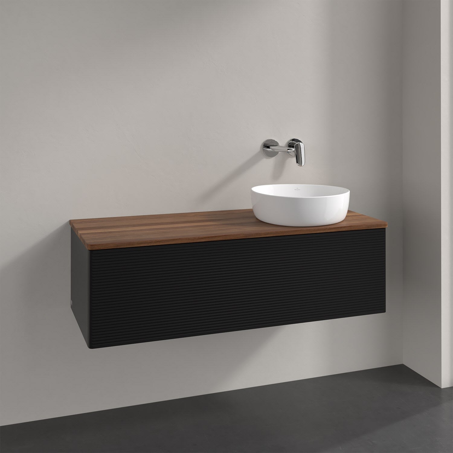 Villeroy & Boch Antao Waschbeckenunterschrank, 120 x 36 cm, 1 Auszug mit LED-Licht, Front mit Struktur, ohne Hahnloch, für Waschtisch rechts