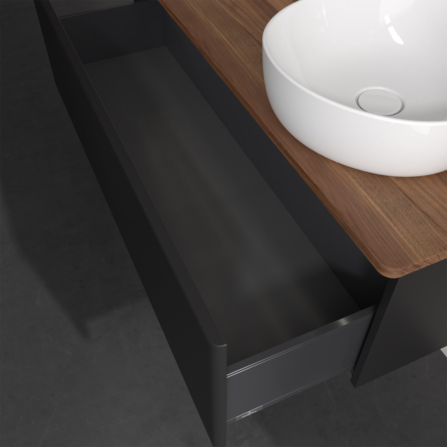 Für diesen Waschbeckenunterschrank stehen Ihnen Aufsatzwaschtische aus verschiedenen Serien zur Verfügung (siehe "Passliste" unter Downloads). Ein ausgewähltes Beispiel finden Sie im Zubehör. Den Waschtisch bitte separat mitbestellen.