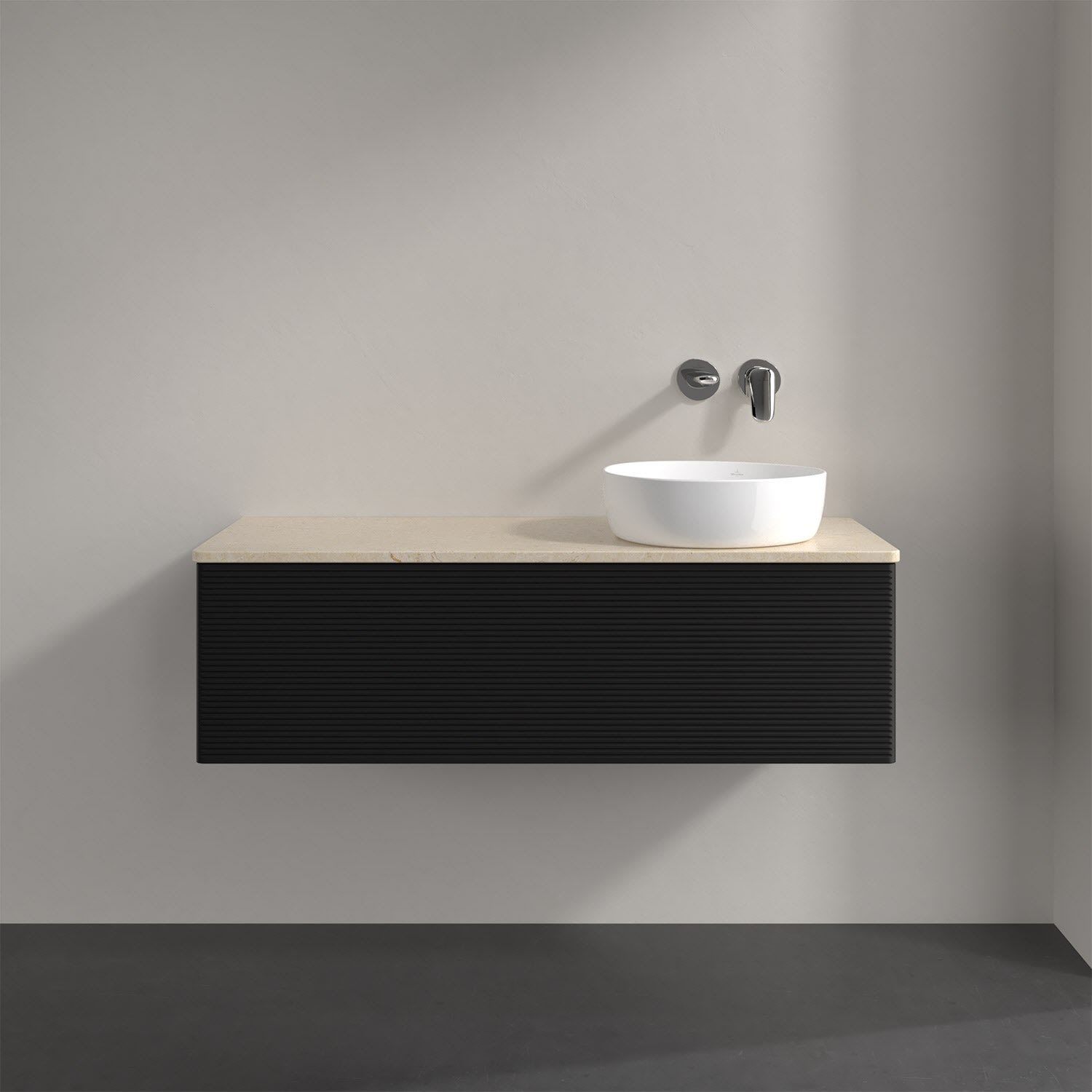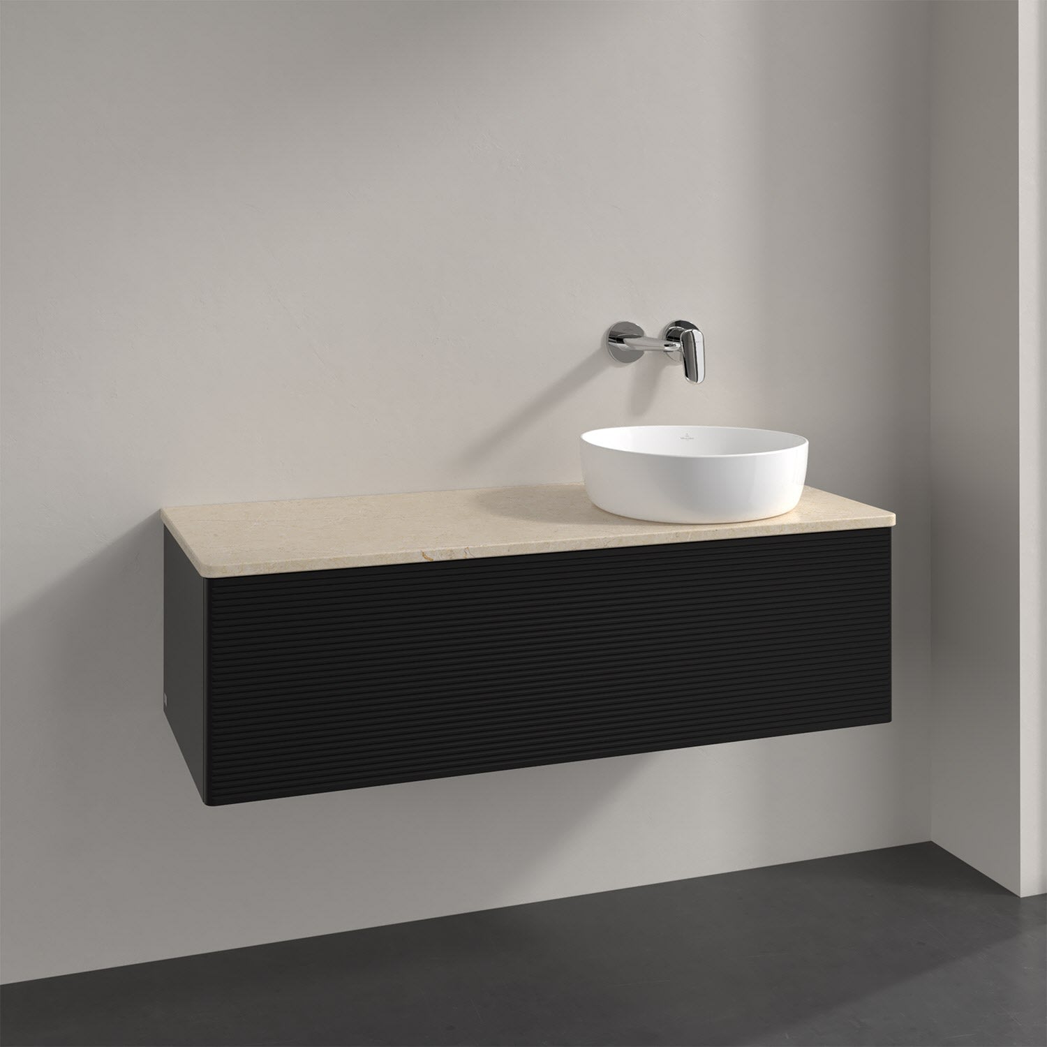 Villeroy & Boch Antao Waschbeckenunterschrank, 120 x 36 cm, 1 Auszug mit LED-Licht, Front mit Struktur, ohne Hahnloch, für Waschtisch rechts