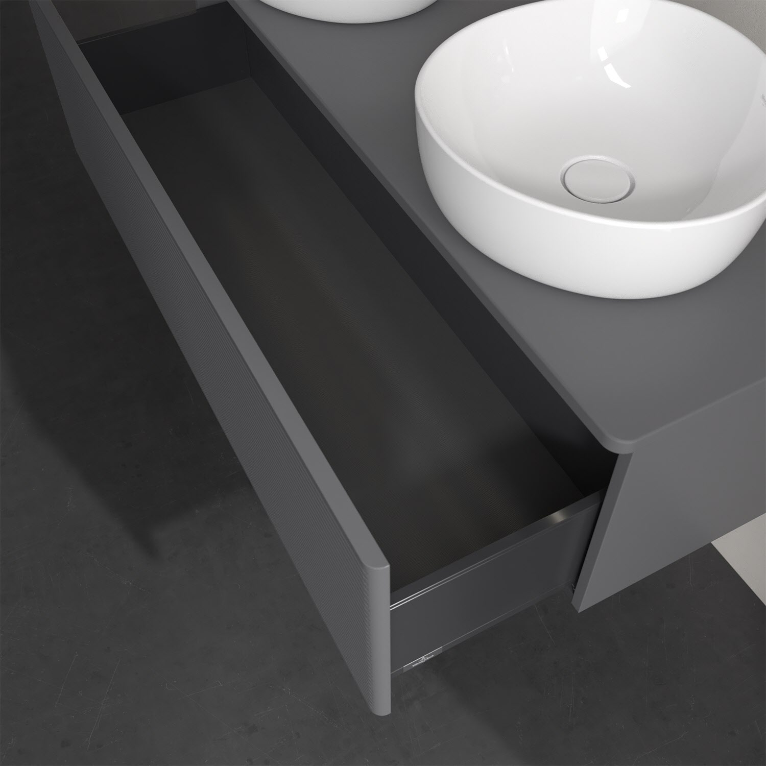 Villeroy & Boch Antao Waschbeckenunterschrank, 120 x 36 cm, 1 Auszug mit LED-Licht, Front mit Struktur, ohne Hahnloch, für Waschtisch links und rechts
