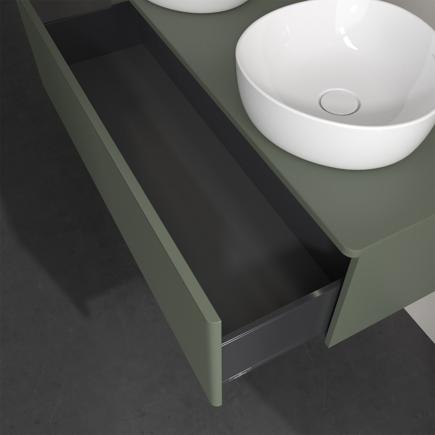 - kein Umfallen oder Verrutschen von Pflegeprodukten in den Schubladen dank rutschhemmendem Boden