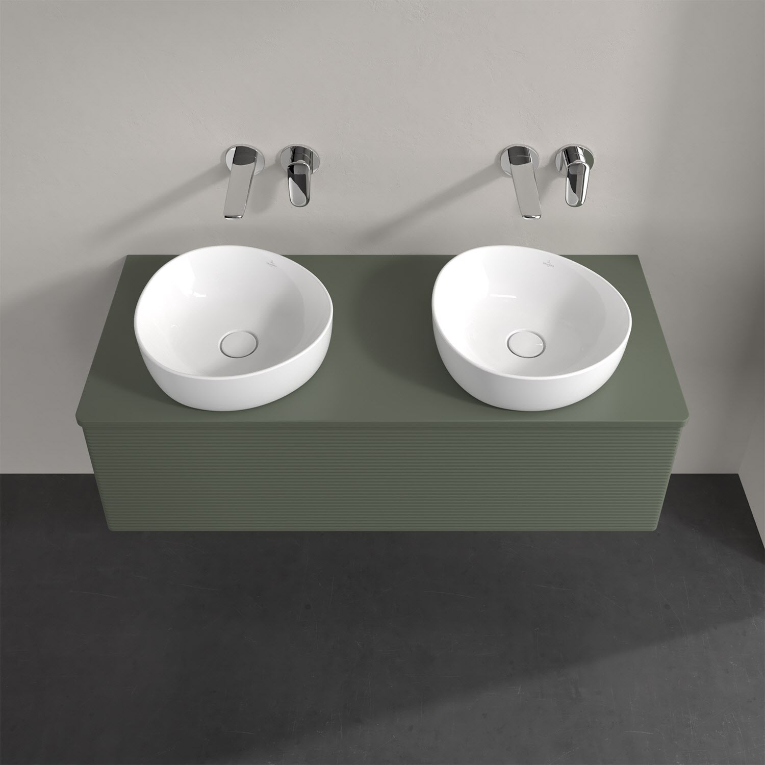 Für diesen Waschbeckenunterschrank stehen Ihnen Aufsatzwaschtische aus verschiedenen Serien zur Verfügung (siehe "Passliste" unter Downloads). Ein ausgewähltes Beispiel finden Sie im Zubehör. Den Waschtisch bitte separat mitbestellen.