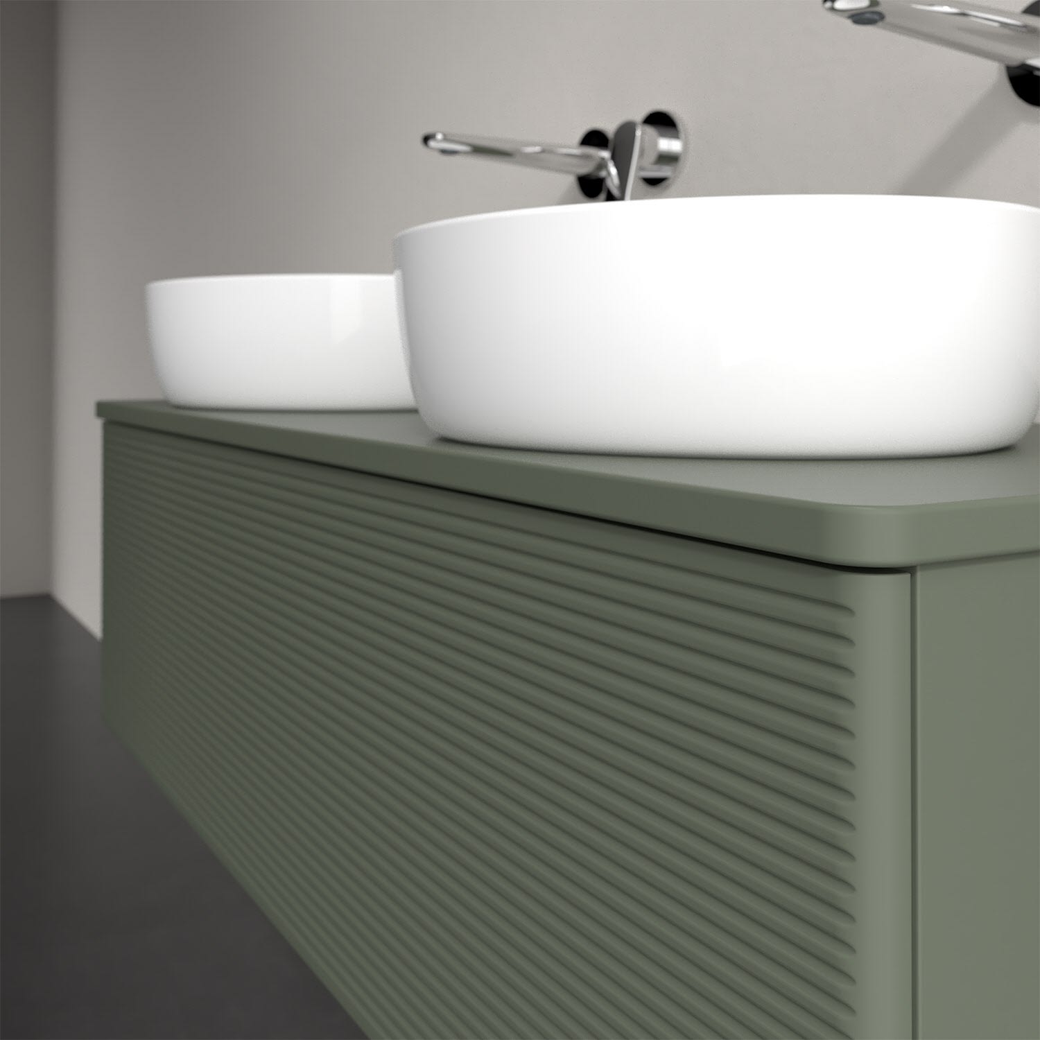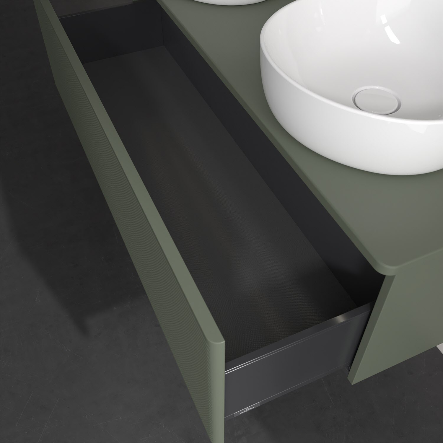 Der wandhängende Antao Waschtischunterschrank von Villeroy & Boch bietet nicht nur jede Menge Stauraum – er ist dank seines naturinspirierten Designs mit seinen abgerundeten Kanten auch noch besonders stilvoll und schafft eine gemütliche Atmosphäre im Badezimmer. Kombiniert mit zwei passenden Aufsatzwaschtischen also die ideale Wahl. Ein extra hoher Auszug bietet viel Platz, um alles Notwendige zu verstauen und Ordnung zu halten. Öffnen lässt er sich durch leichten Druck auf die strukturierte Front. Dabei aktiviert sich übrigens die Auszugsbeleuchtung in angenehmem Warmweiß. Dank Vollauszug hat man immer alles im Blick und der Antirutschboden verhindert ein Umfallen oder Verrutschen der Gegenstände. Einfach clever! Für eine besonders leichte Pflege sorgt die mehrschichtig deckend lackierte Oberfläche.