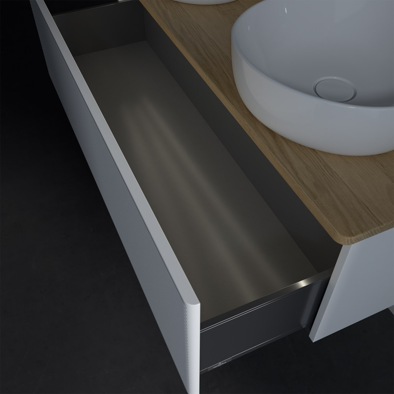 Der wandhängende Antao Waschtischunterschrank von Villeroy & Boch bietet nicht nur jede Menge Stauraum – er ist dank seines naturinspirierten Designs mit seinen abgerundeten Kanten auch noch besonders stilvoll und schafft eine gemütliche Atmosphäre im Badezimmer. Kombiniert mit zwei passenden Aufsatzwaschtischen also die ideale Wahl. Ein extra hoher Auszug bietet viel Platz, um alles Notwendige zu verstauen und Ordnung zu halten. Öffnen lässt er sich durch leichten Druck auf die strukturierte Front. Dabei aktiviert sich übrigens die Auszugsbeleuchtung in angenehmem Warmweiß. Dank Vollauszug hat man immer alles im Blick und der Antirutschboden verhindert ein Umfallen oder Verrutschen der Gegenstände. Einfach clever! Für eine besonders leichte Pflege sorgt die mehrschichtig deckend lackierte Oberfläche. Bei der Ausführung in Massivholz wird dank des verarbeiteten Massivholzes jedes Möbel zu einem Unikat, das sich durch das lebendige Naturmaterial durch seine einzigartige Struktur und Maserung auszeichnet.