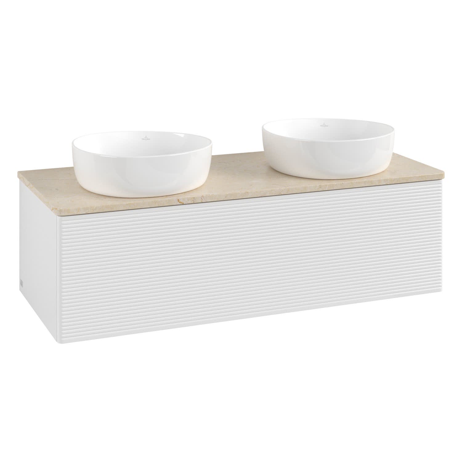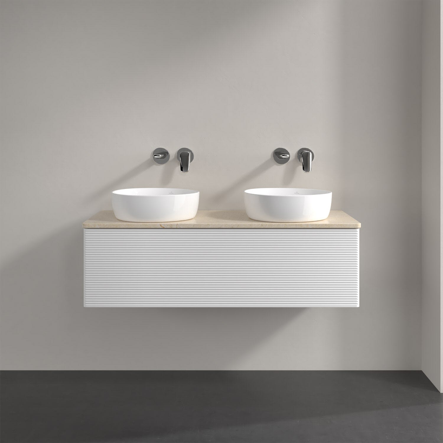 Villeroy & Boch Antao Waschbeckenunterschrank, 120 x 36 cm, 1 Auszug mit LED-Licht, Front mit Struktur, ohne Hahnloch, für Waschtisch links und rechts