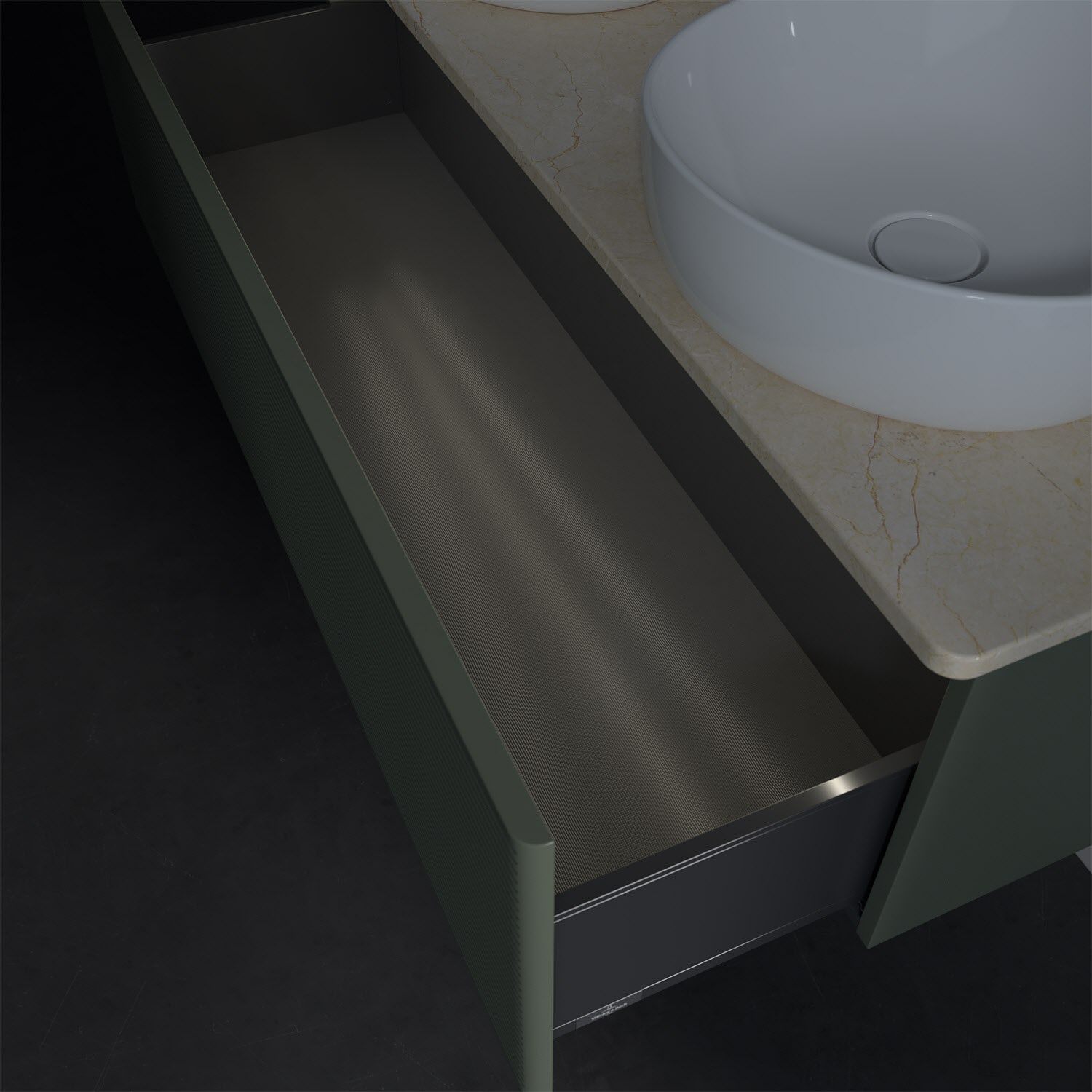 - kein Umfallen oder Verrutschen von Pflegeprodukten in den Schubladen dank rutschhemmendem Boden