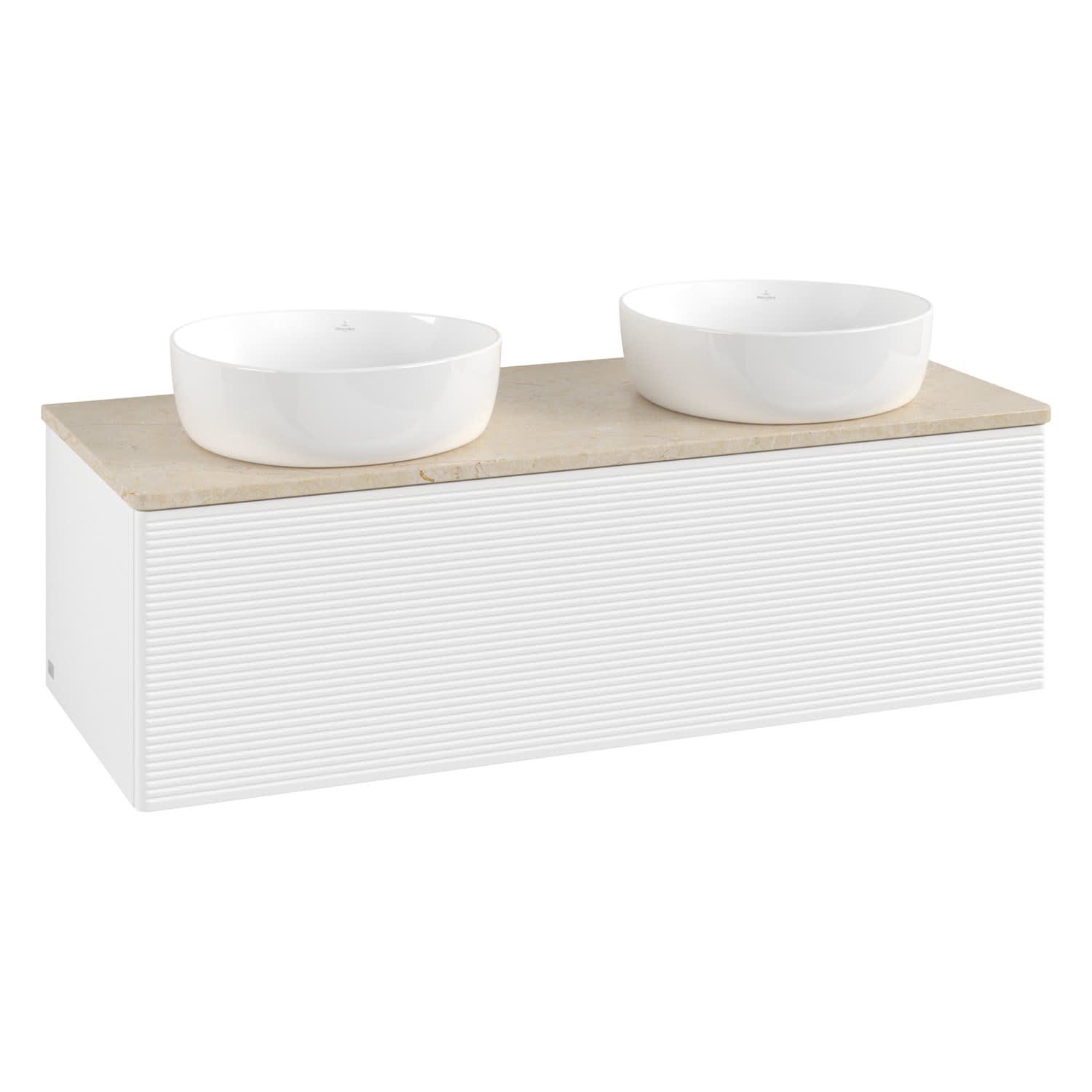 Villeroy & Boch Antao Waschbeckenunterschrank, 120 x 36 cm, 1 Auszug mit LED-Licht, Front mit Struktur, ohne Hahnloch, für Waschtisch links und rechts