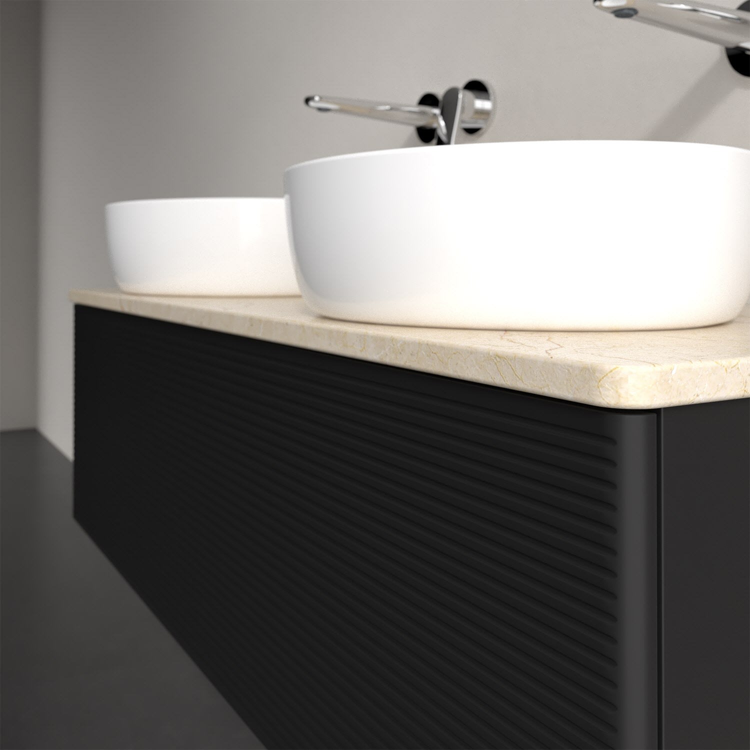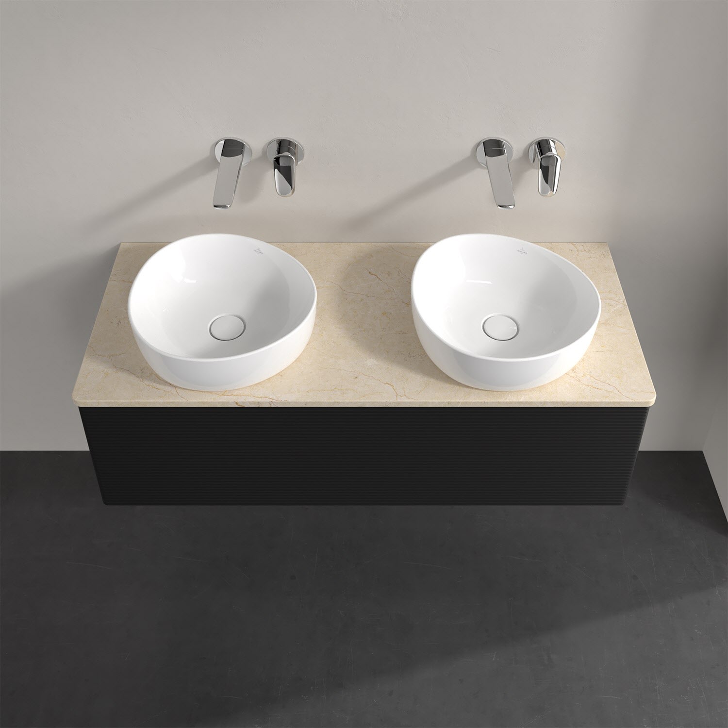 Für diesen Waschbeckenunterschrank stehen Ihnen Aufsatzwaschtische aus verschiedenen Serien zur Verfügung (siehe "Passliste" unter Downloads). Ein ausgewähltes Beispiel finden Sie im Zubehör. Den Waschtisch bitte separat mitbestellen.