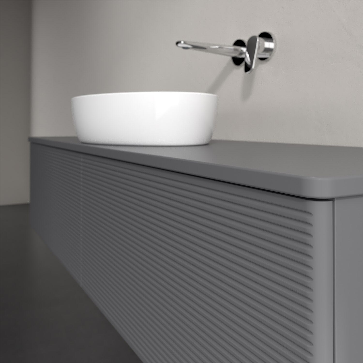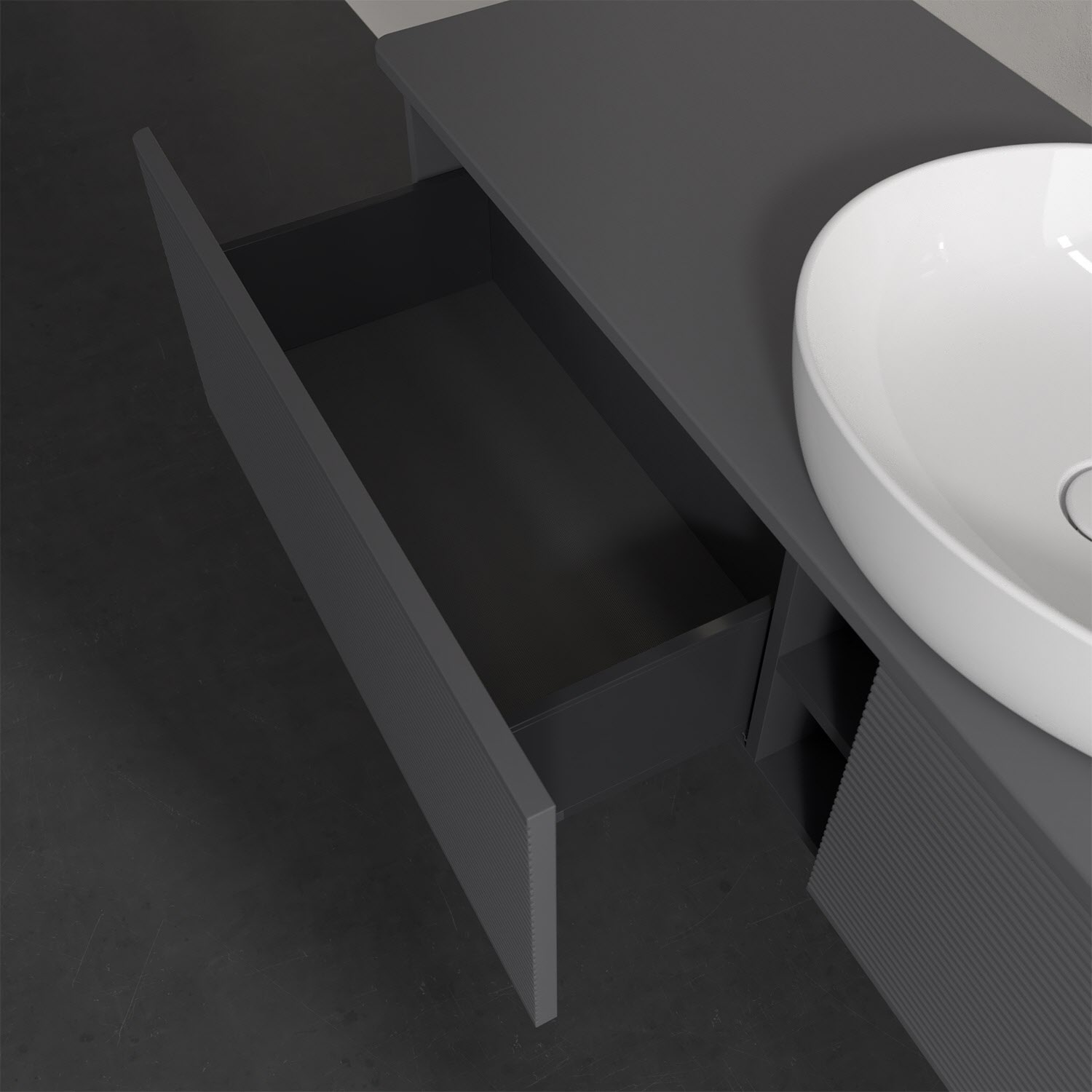 Der wandhängende Antao Waschtischunterschrank bietet mit seinen beiden extra hohen Auszügen und seiner erstaunlichen Größe viel Platz zum Verstauen von Utensilien im Badezimmer. Dank des mittig platzierten Aufsatzwaschtischs gibt es seitlich weiteren Platz für Handtücher, Seifenspender & Co. auf der Waschtischplatte. Inspiriert von der Natur überzeugt der Unterschrank auch optisch mit sanfter Formsprache und abgerundete Kanten. Die grifflosen Auszüge mit strukturierter Front sind mit der Push-to-Open Funktion ausgestattet und verfügen über einen Antirutschboden, damit Utensilien sicher verstaut werden können. Den Überblick behält man dank der warmweißen Auszugsbeleuchtung, die sich automatisch beim Öffnen einschaltet. Mit seiner Vollauszug- und Selbsteinzug-Funktion ist der Schrank einfach praktisch und leicht zu bedienen. Qualität von Villeroy & Boch! Für eine besonders leichte Pflege sorgt die mehrschichtig deckend lackierte Oberfläche.
