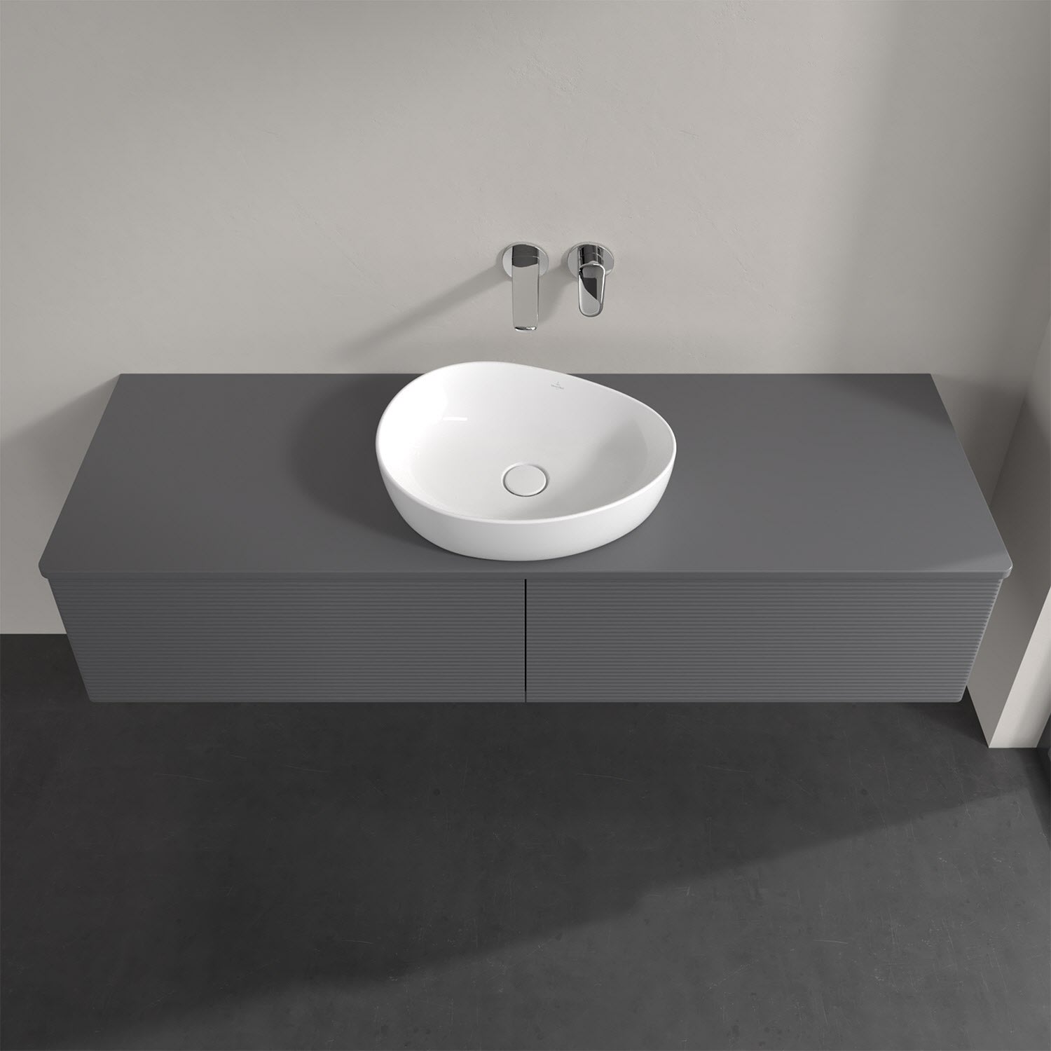 Für diesen Waschbeckenunterschrank stehen Ihnen Aufsatzwaschtische aus verschiedenen Serien zur Verfügung (siehe "Passliste" unter Downloads). Ein ausgewähltes Beispiel finden Sie im Zubehör. Den Waschtisch bitte separat mitbestellen.
