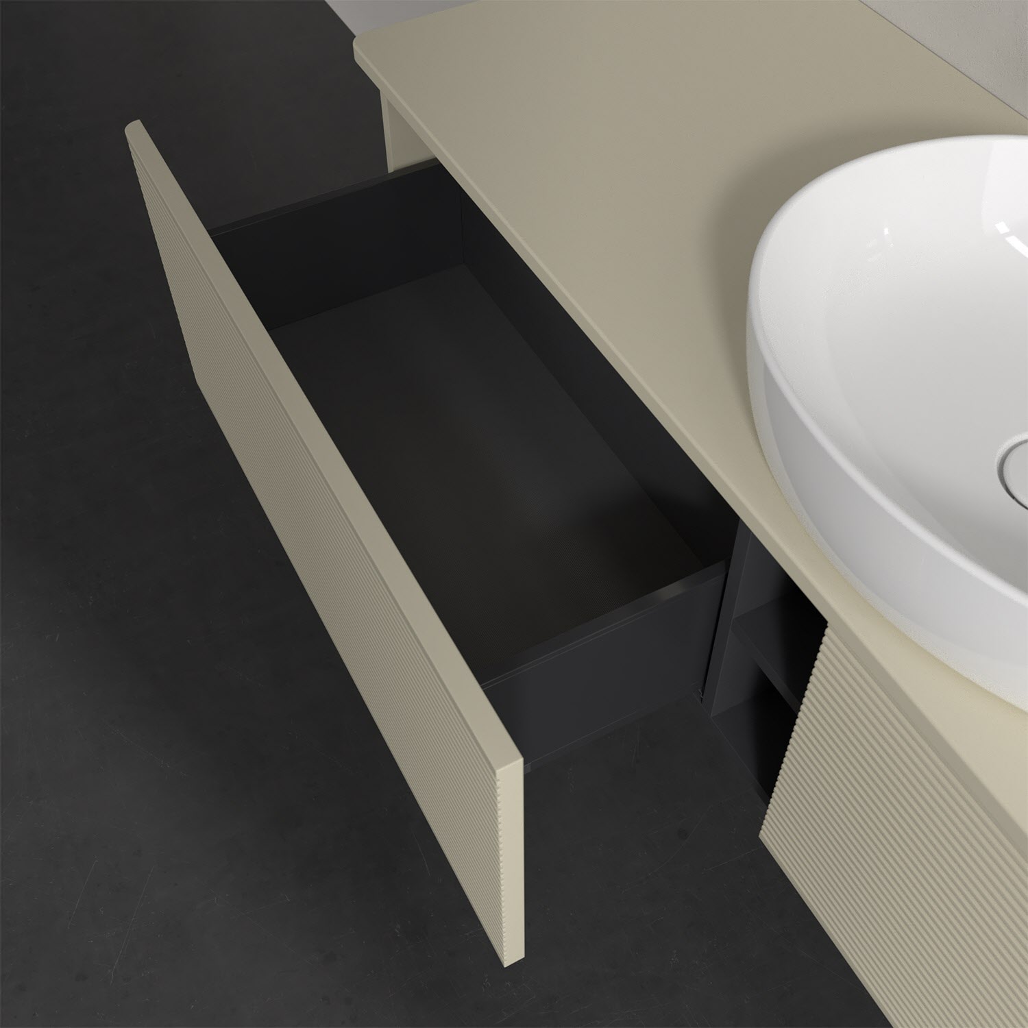 Villeroy & Boch Antao Waschbeckenunterschrank, 160 x 36 cm, 2 Auszüge mit LED-Licht, Front mit Struktur, ohne Hahnloch, für Waschtisch mittig
