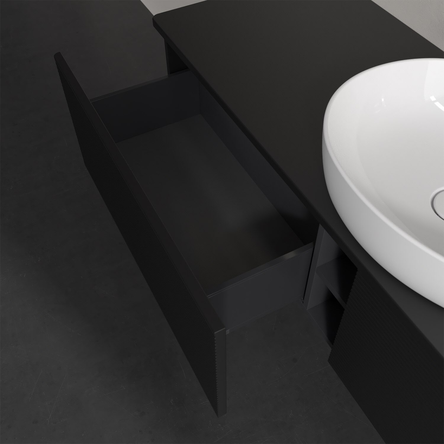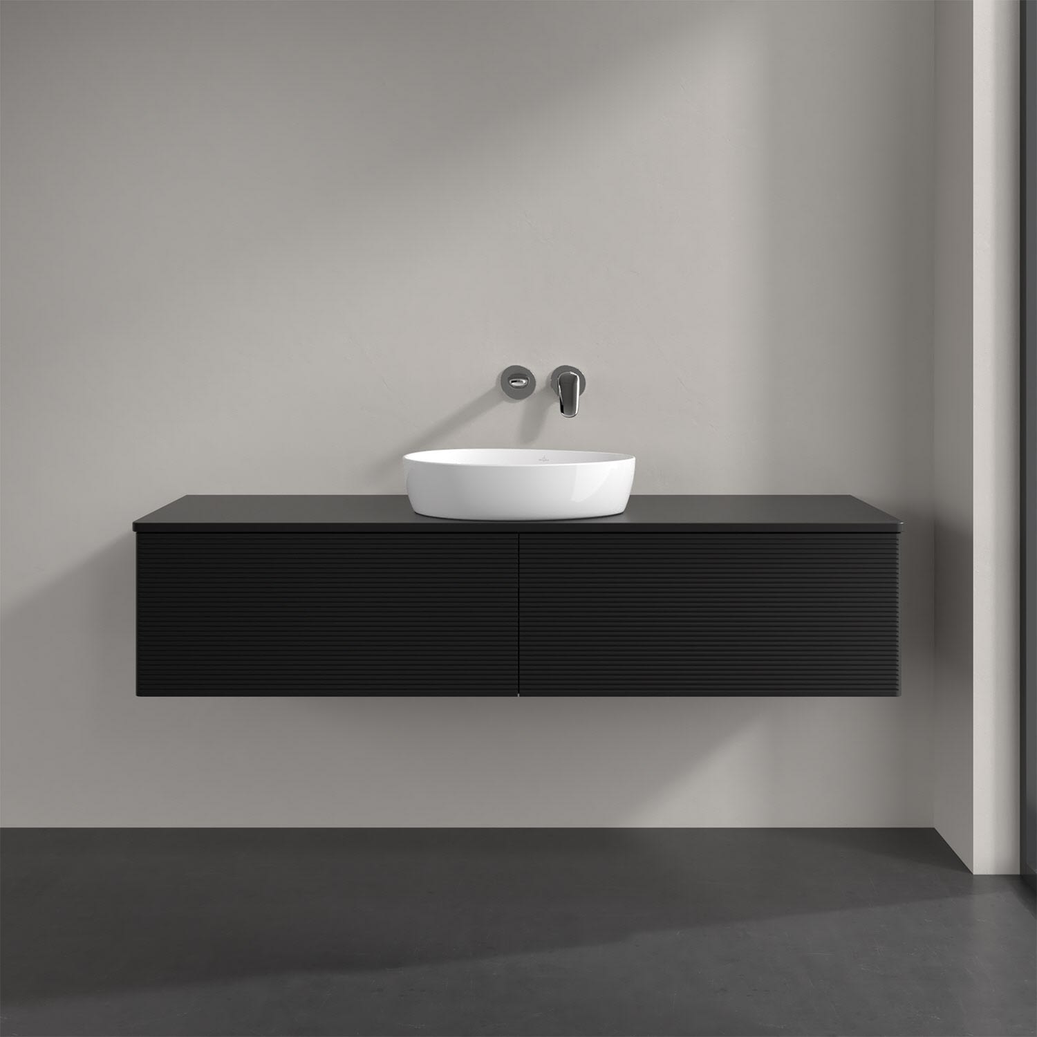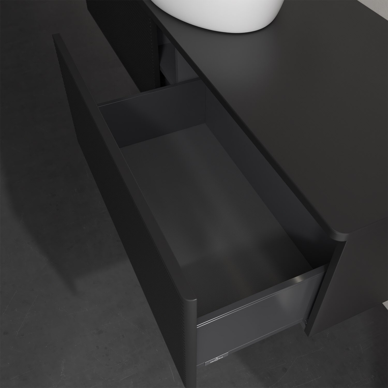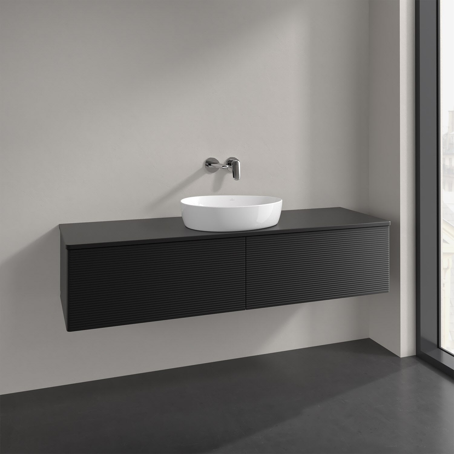Villeroy & Boch Antao Waschbeckenunterschrank, 160 x 36 cm, 2 Auszüge mit LED-Licht, Front mit Struktur, ohne Hahnloch, für Waschtisch mittig