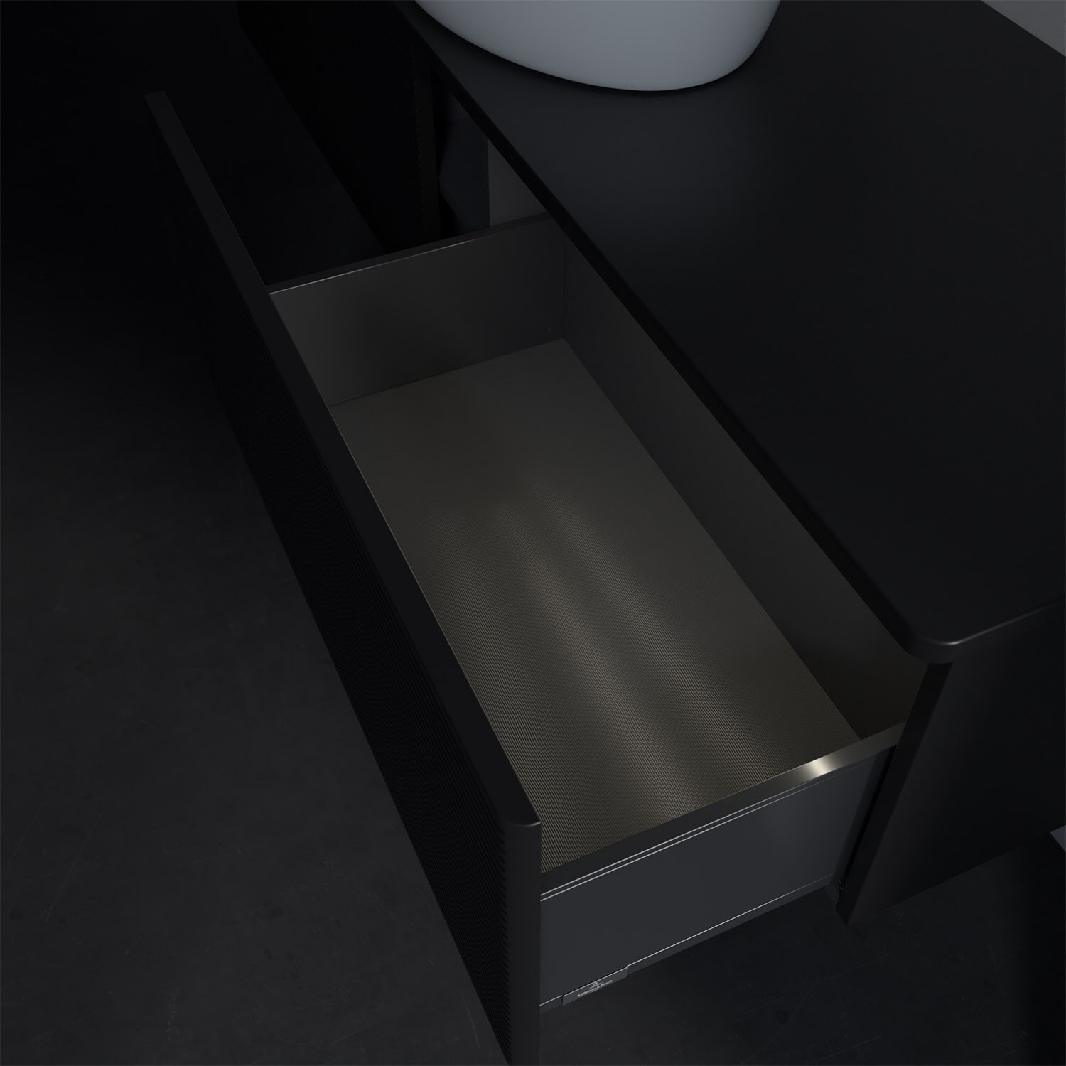 - kein Umfallen oder Verrutschen von Pflegeprodukten in den Schubladen dank rutschhemmendem Boden
