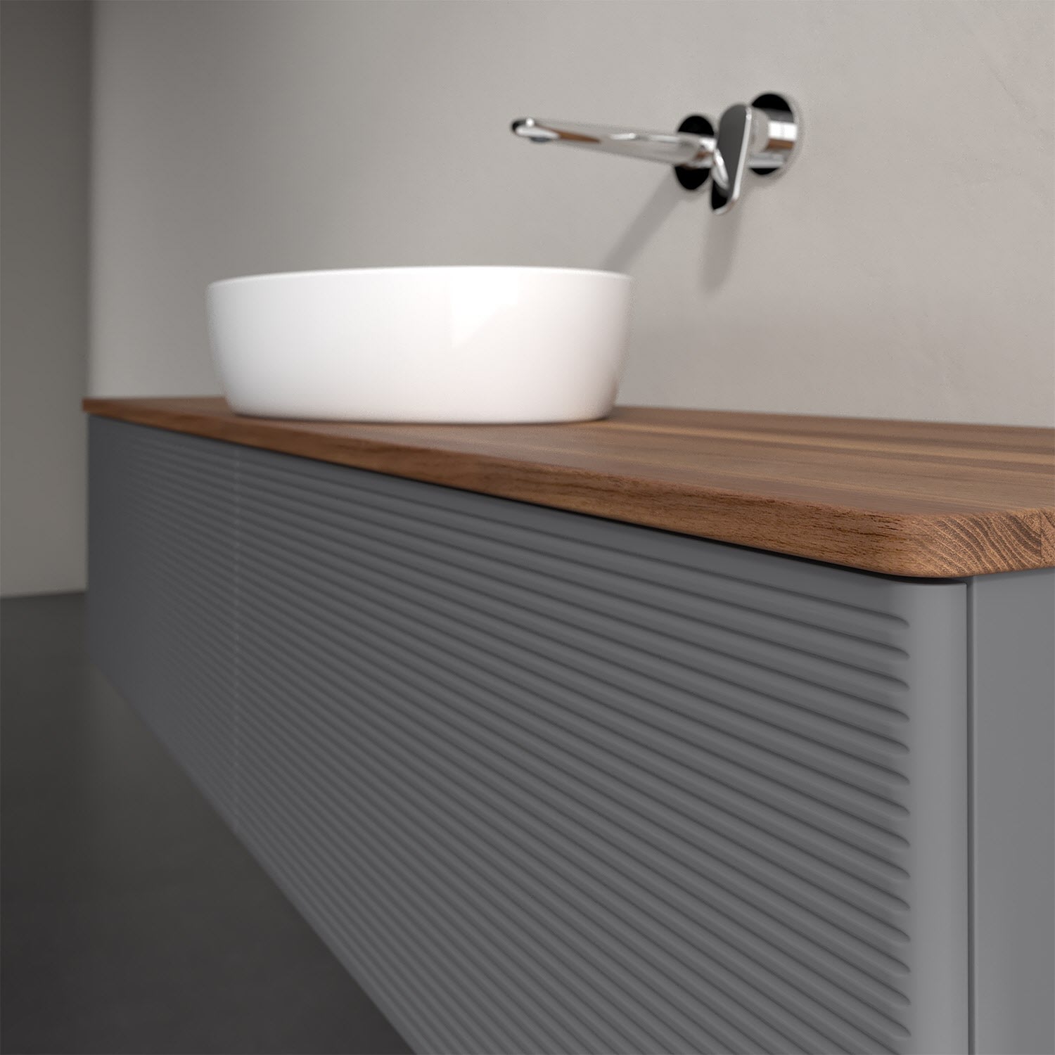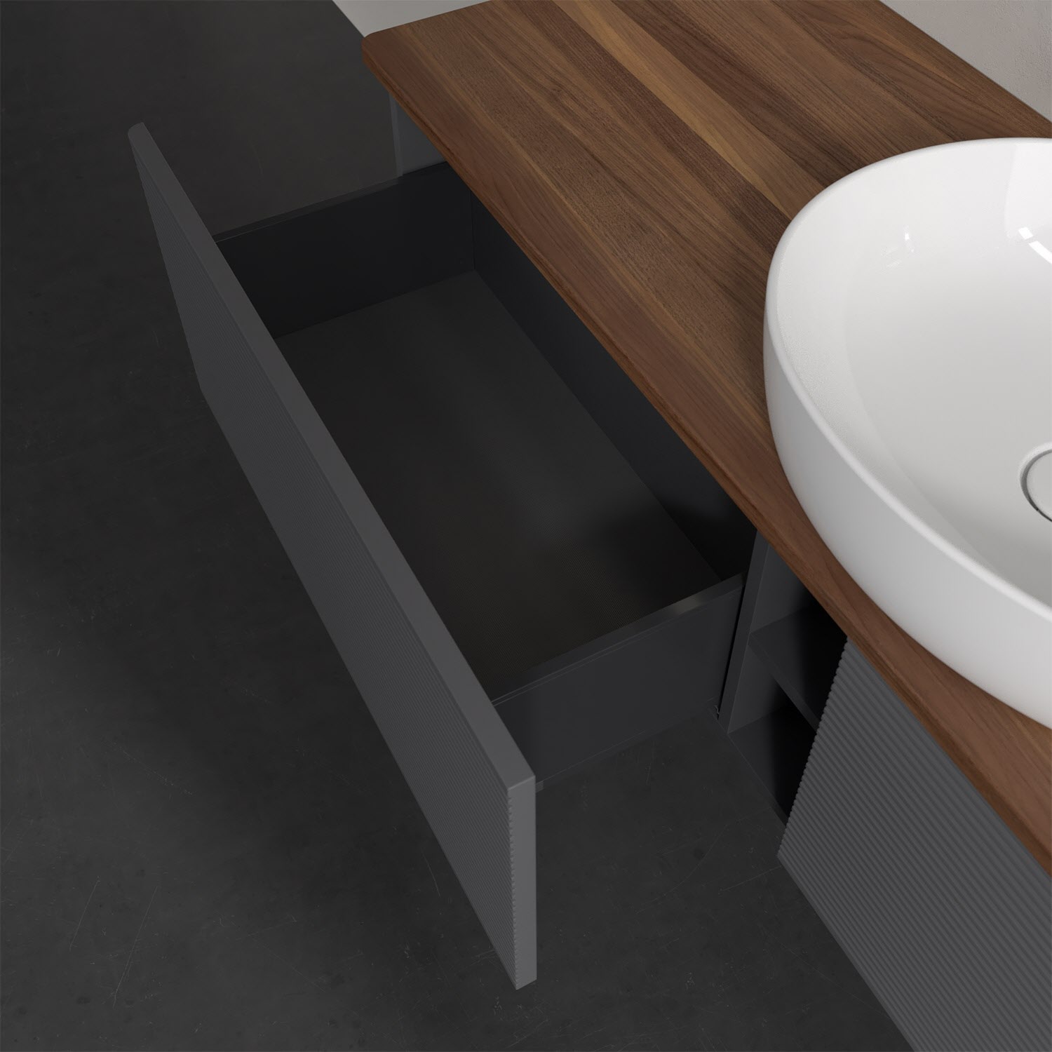 Der wandhängende Antao Waschtischunterschrank bietet mit seinen beiden extra hohen Auszügen und seiner erstaunlichen Größe viel Platz zum Verstauen von Utensilien im Badezimmer. Dank des mittig platzierten Aufsatzwaschtischs gibt es seitlich weiteren Platz für Handtücher, Seifenspender & Co. auf der Waschtischplatte. Inspiriert von der Natur überzeugt der Unterschrank auch optisch mit sanfter Formsprache und abgerundete Kanten. Die grifflosen Auszüge mit strukturierter Front sind mit der Push-to-Open Funktion ausgestattet und verfügen über einen Antirutschboden, damit Utensilien sicher verstaut werden können. Den Überblick behält man dank der warmweißen Auszugsbeleuchtung, die sich automatisch beim Öffnen einschaltet. Mit seiner Vollauszug- und Selbsteinzug-Funktion ist der Schrank einfach praktisch und leicht zu bedienen. Qualität von Villeroy & Boch! Für eine besonders leichte Pflege sorgt die mehrschichtig deckend lackierte Oberfläche. Bei der Ausführung in Massivholz wird dank des verarbeiteten Massivholzes jedes Möbel zu einem Unikat, das sich durch das lebendige Naturmaterial durch seine einzigartige Struktur und Maserung auszeichnet.