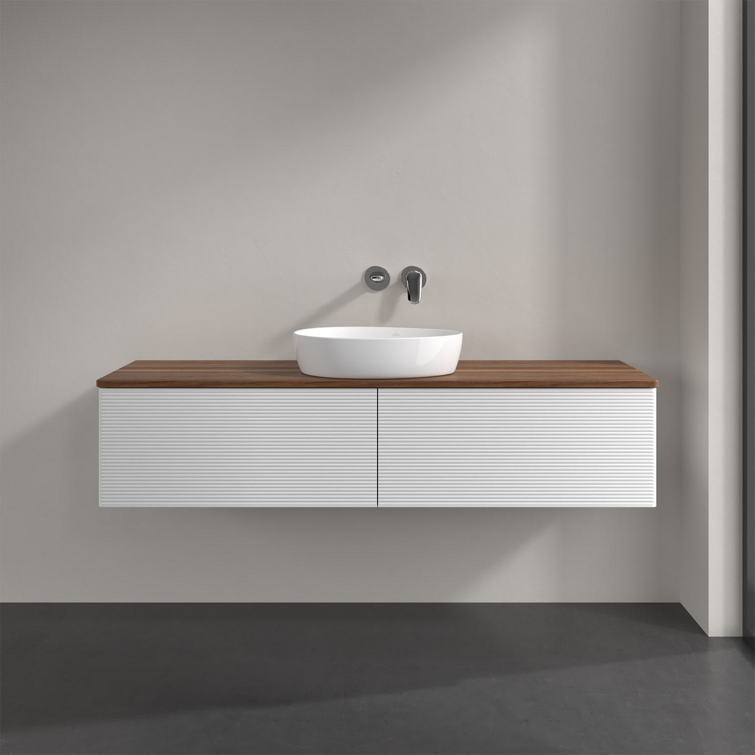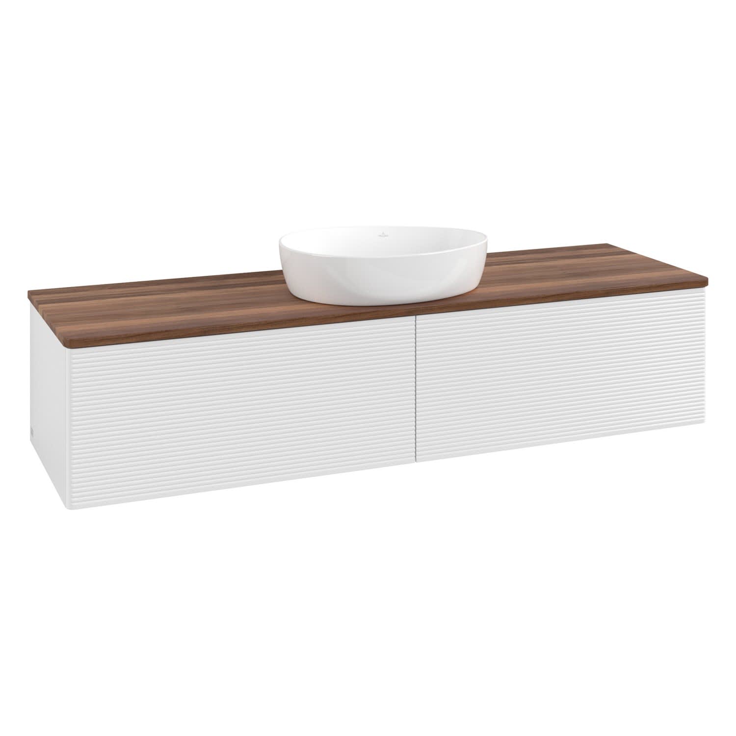 Villeroy & Boch Antao Waschbeckenunterschrank, 160 x 36 cm, 2 Auszüge mit LED-Licht, Front mit Struktur, ohne Hahnloch, für Waschtisch mittig
