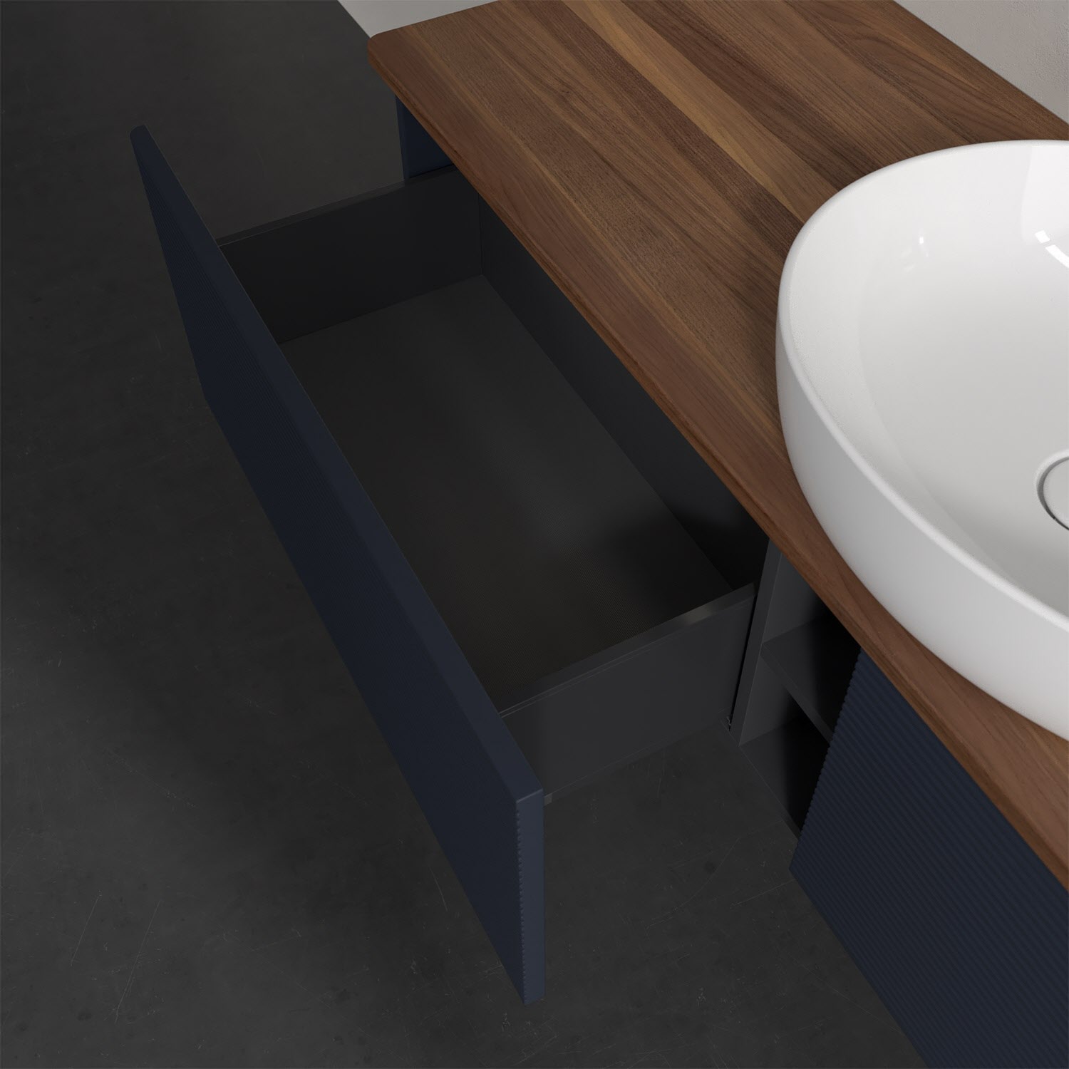 Villeroy & Boch Antao Waschbeckenunterschrank, 160 x 36 cm, 2 Auszüge mit LED-Licht, Front mit Struktur, ohne Hahnloch, für Waschtisch mittig