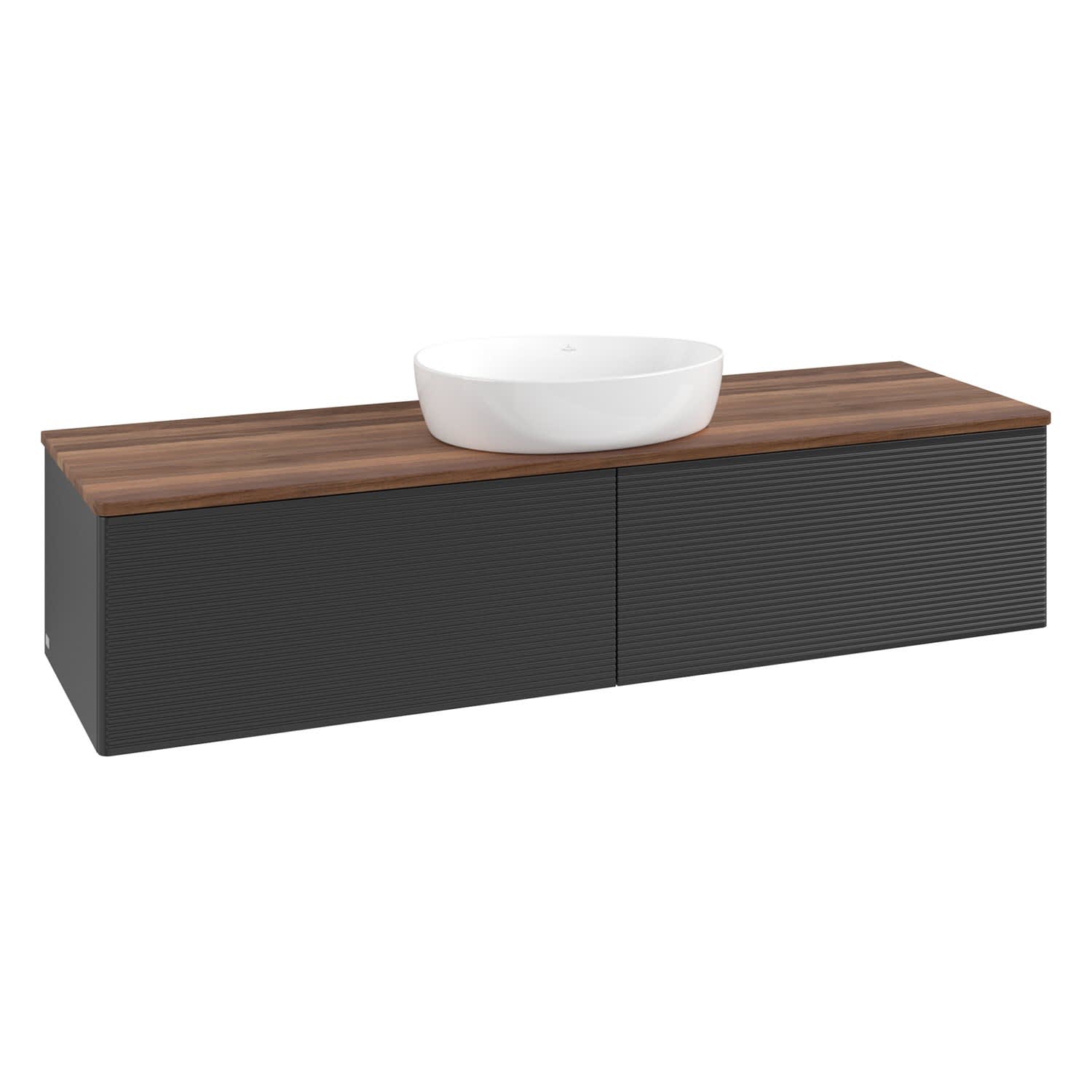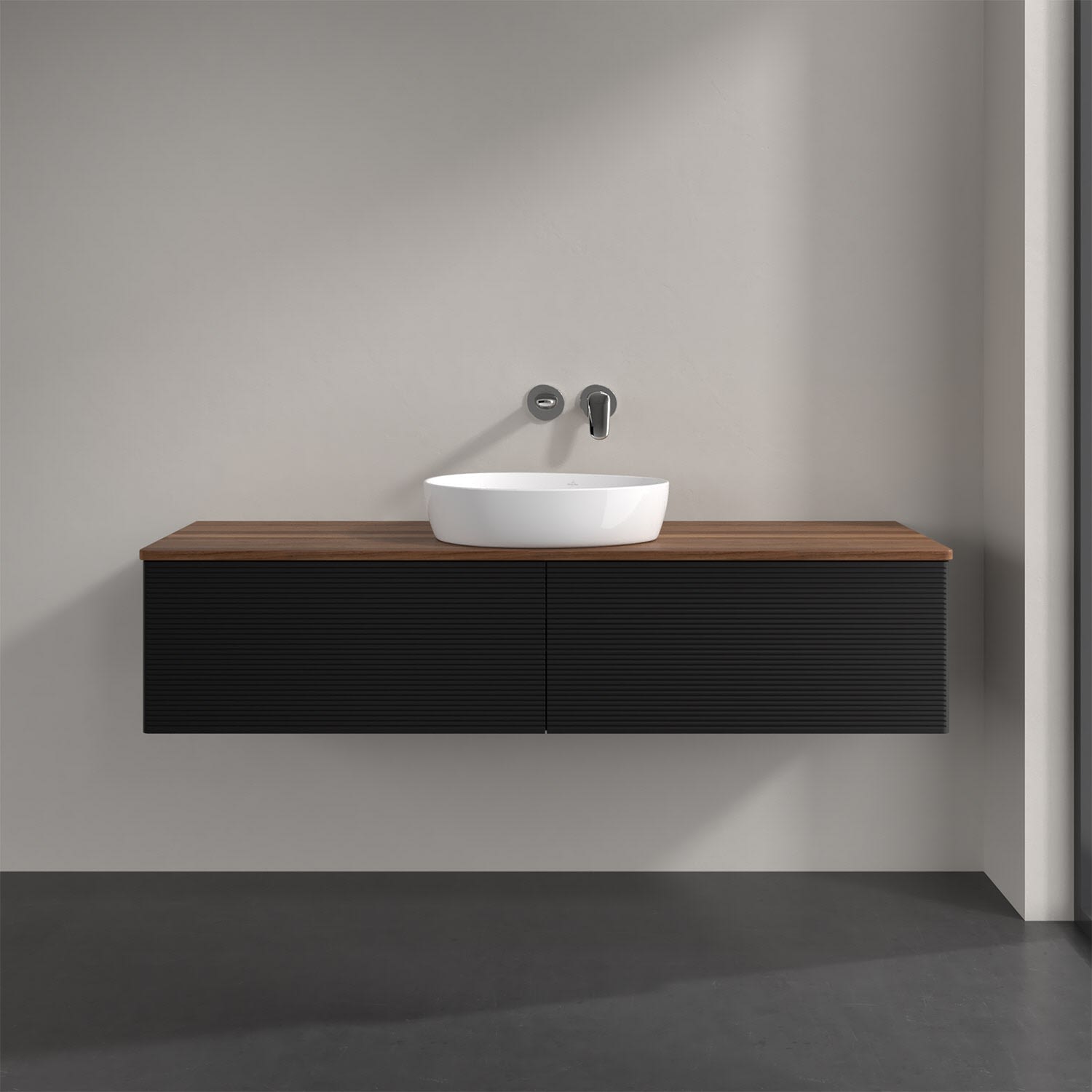 Villeroy & Boch Antao Waschbeckenunterschrank, 160 x 36 cm, 2 Auszüge mit LED-Licht, Front mit Struktur, ohne Hahnloch, für Waschtisch mittig