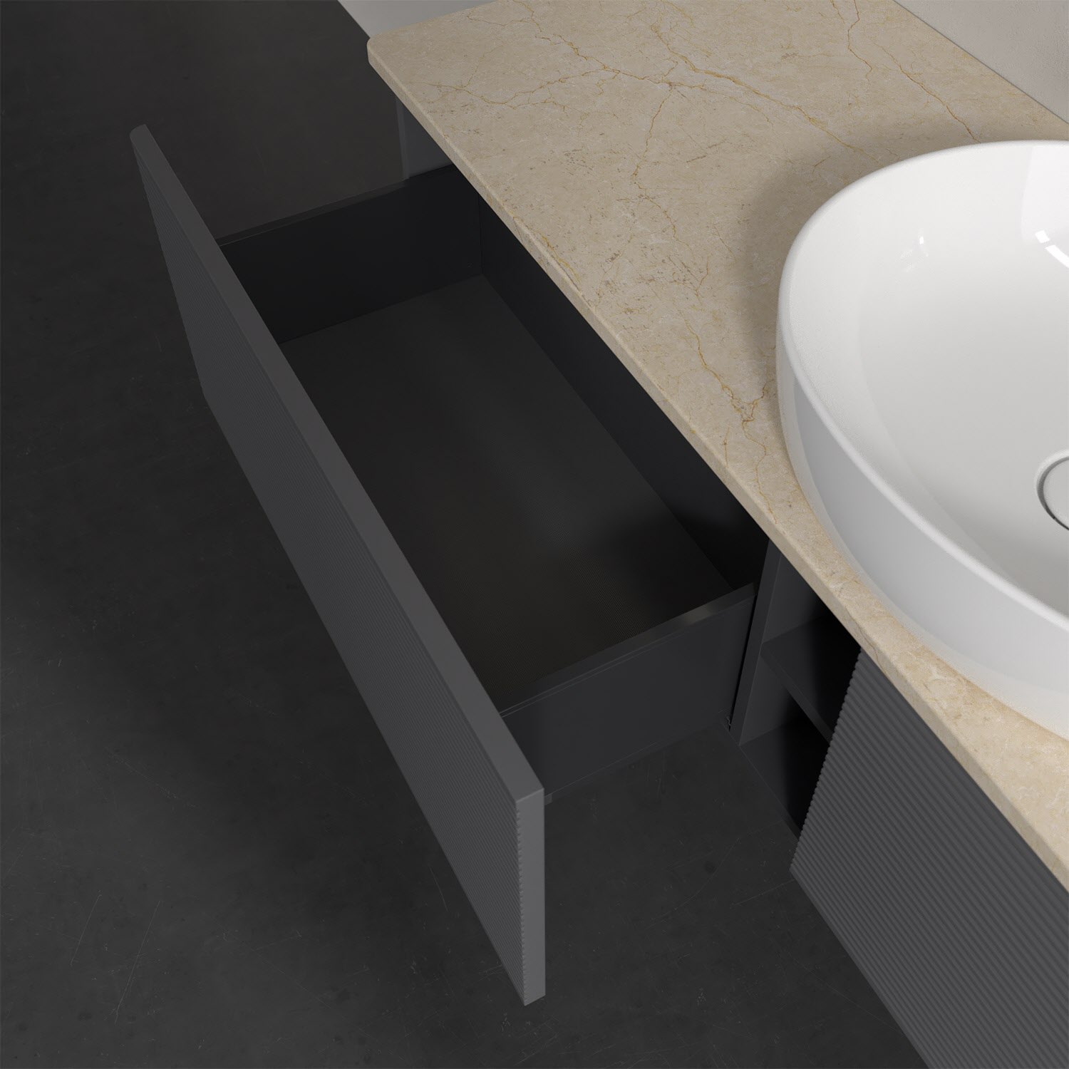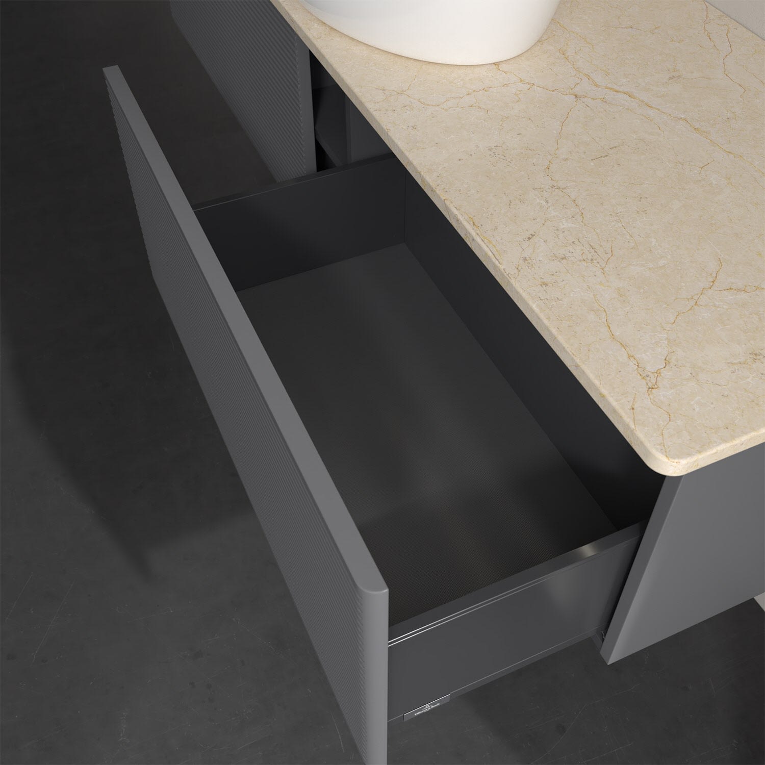Villeroy & Boch Antao Waschbeckenunterschrank, 160 x 36 cm, 2 Auszüge mit LED-Licht, Front mit Struktur, ohne Hahnloch, für Waschtisch mittig