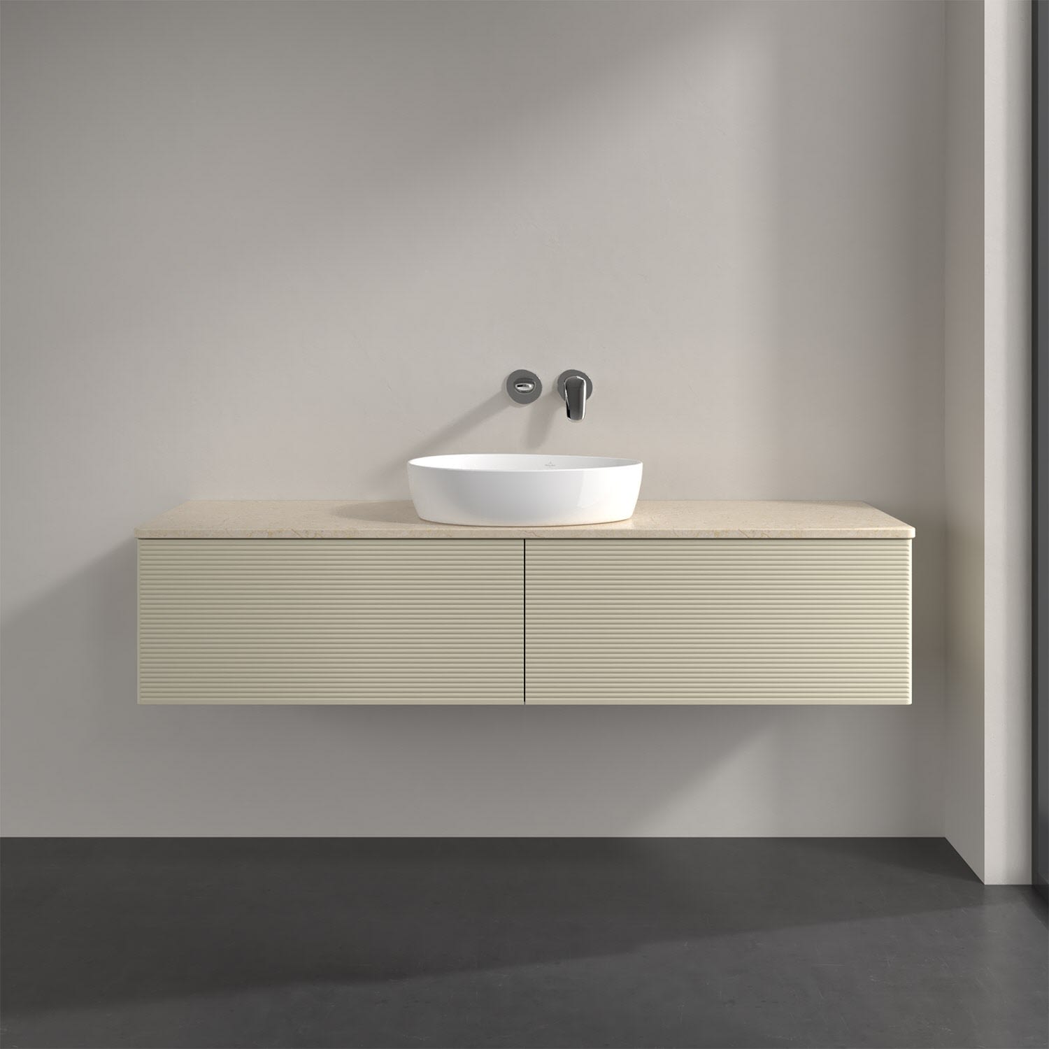 Villeroy & Boch Antao Waschbeckenunterschrank, 160 x 36 cm, 2 Auszüge mit LED-Licht, Front mit Struktur, ohne Hahnloch, für Waschtisch mittig