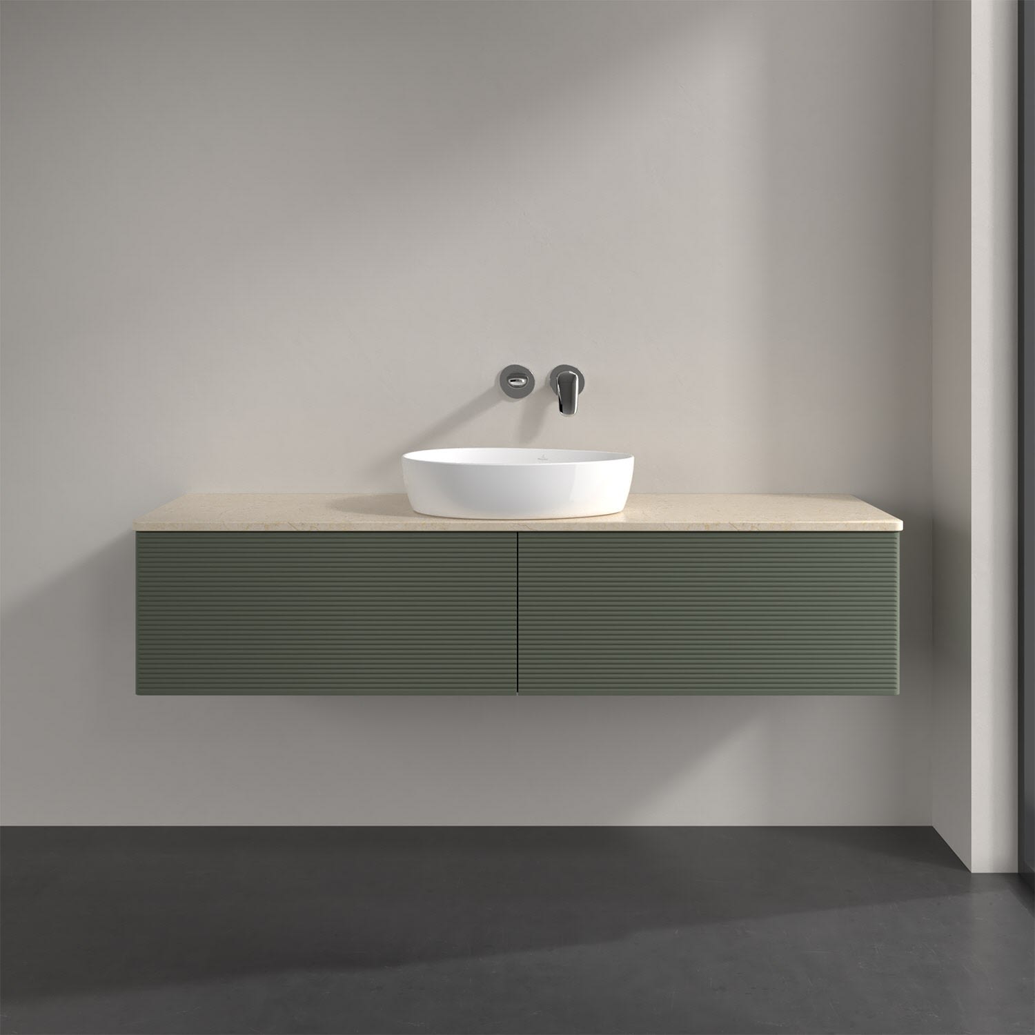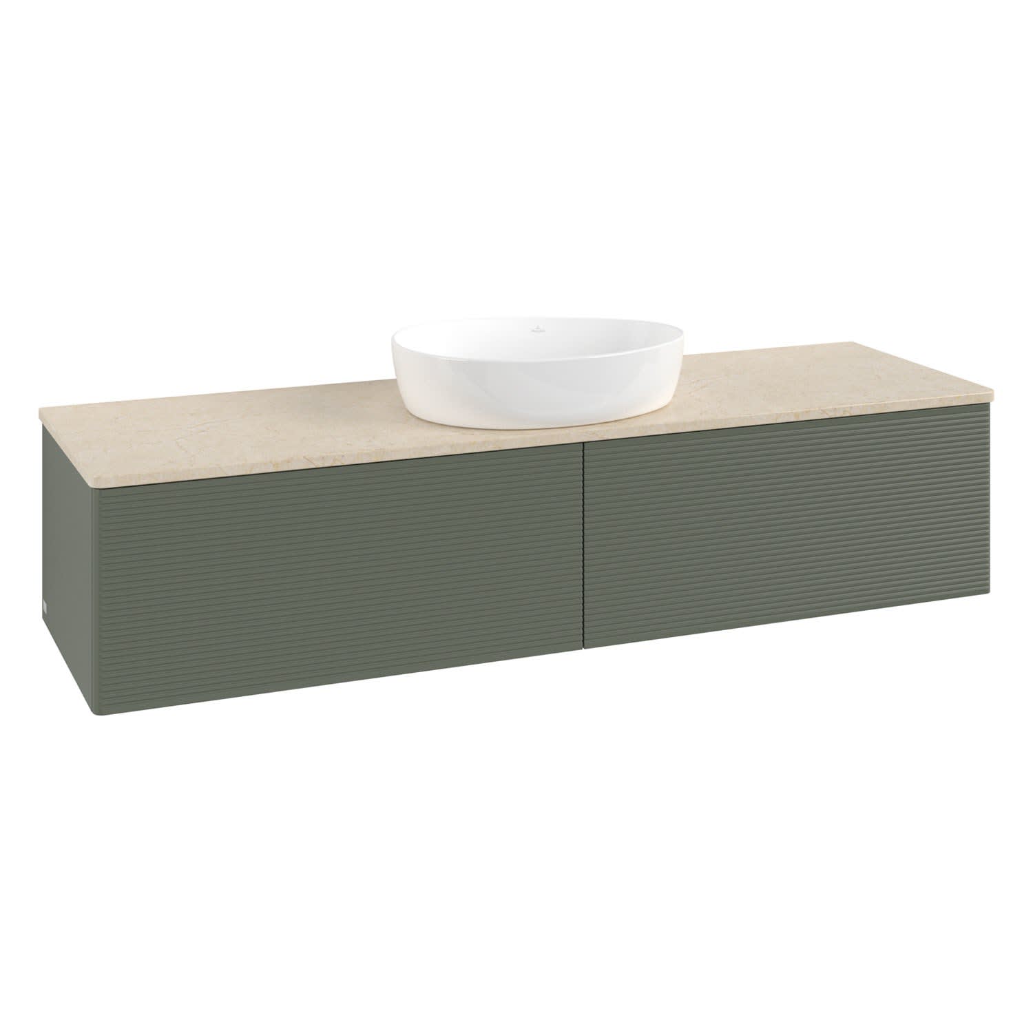 Villeroy & Boch Antao Waschbeckenunterschrank, 160 x 36 cm, 2 Auszüge mit LED-Licht, Front mit Struktur, ohne Hahnloch, für Waschtisch mittig