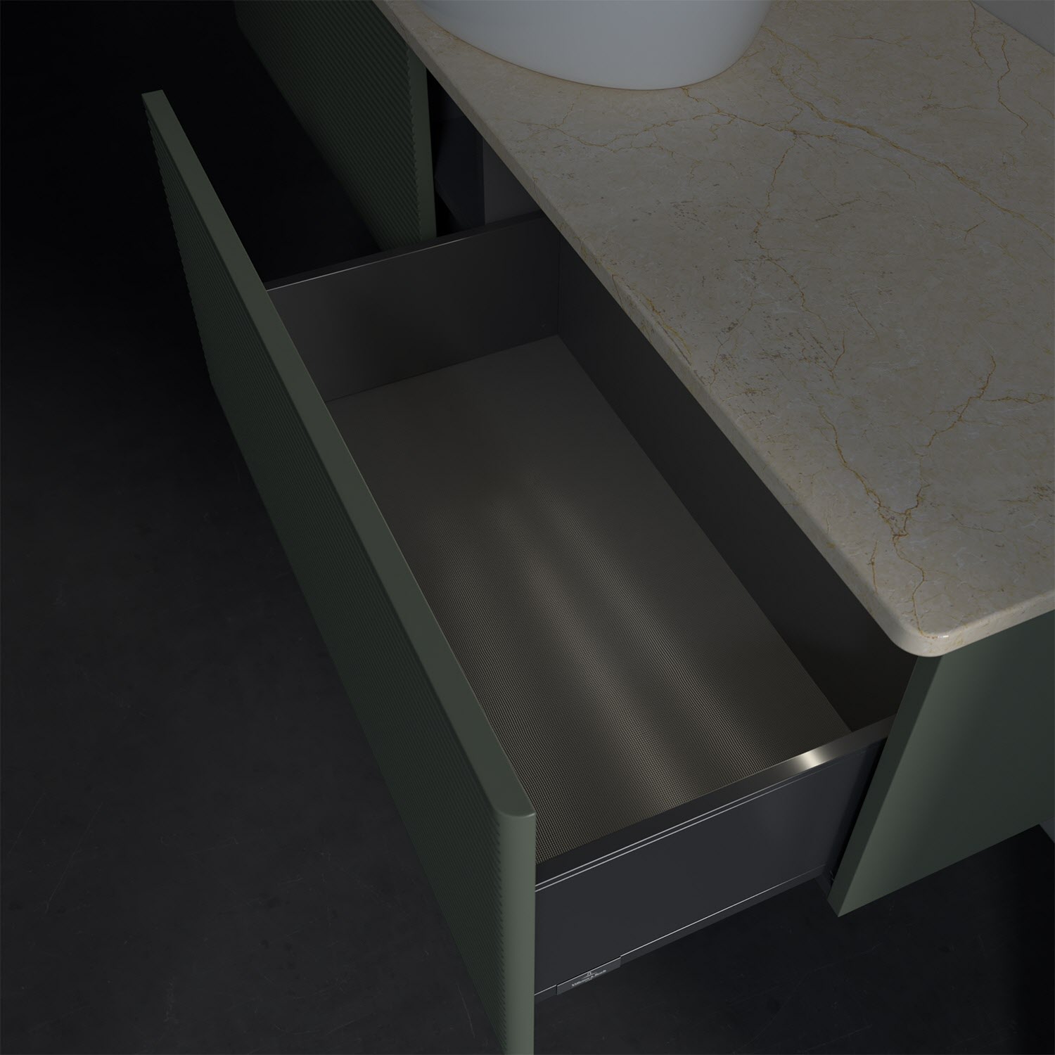 - kein Umfallen oder Verrutschen von Pflegeprodukten in den Schubladen dank rutschhemmendem Boden