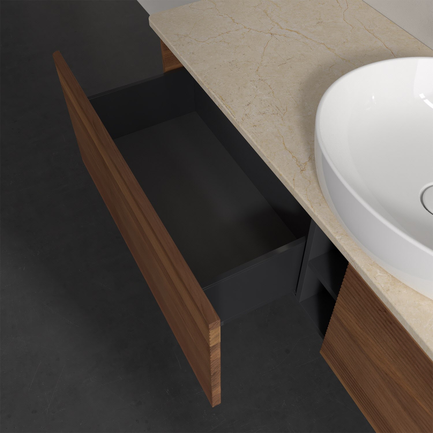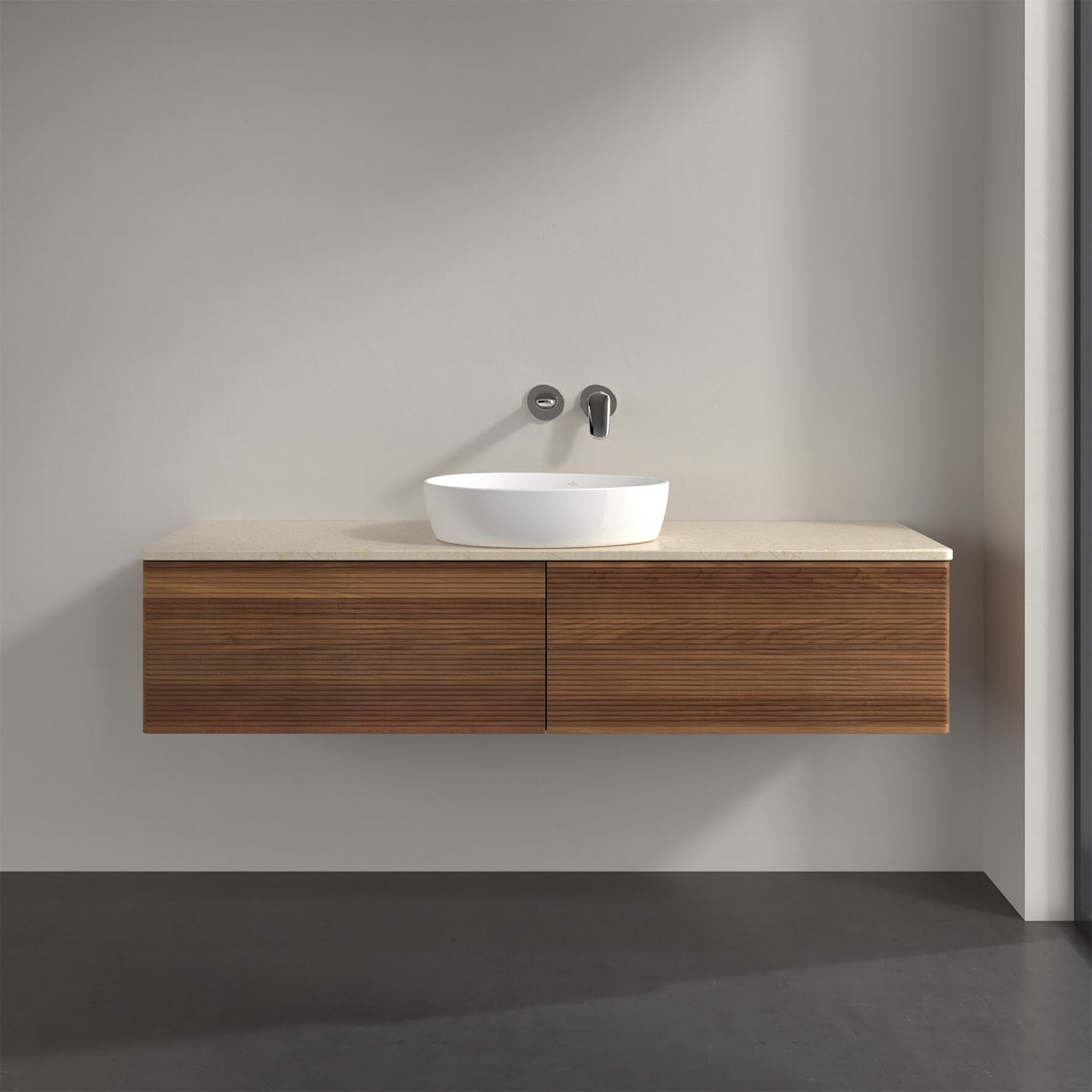 Villeroy & Boch Antao Waschbeckenunterschrank, 160 x 36 cm, 2 Auszüge mit LED-Licht, Front mit Struktur, ohne Hahnloch, für Waschtisch mittig
