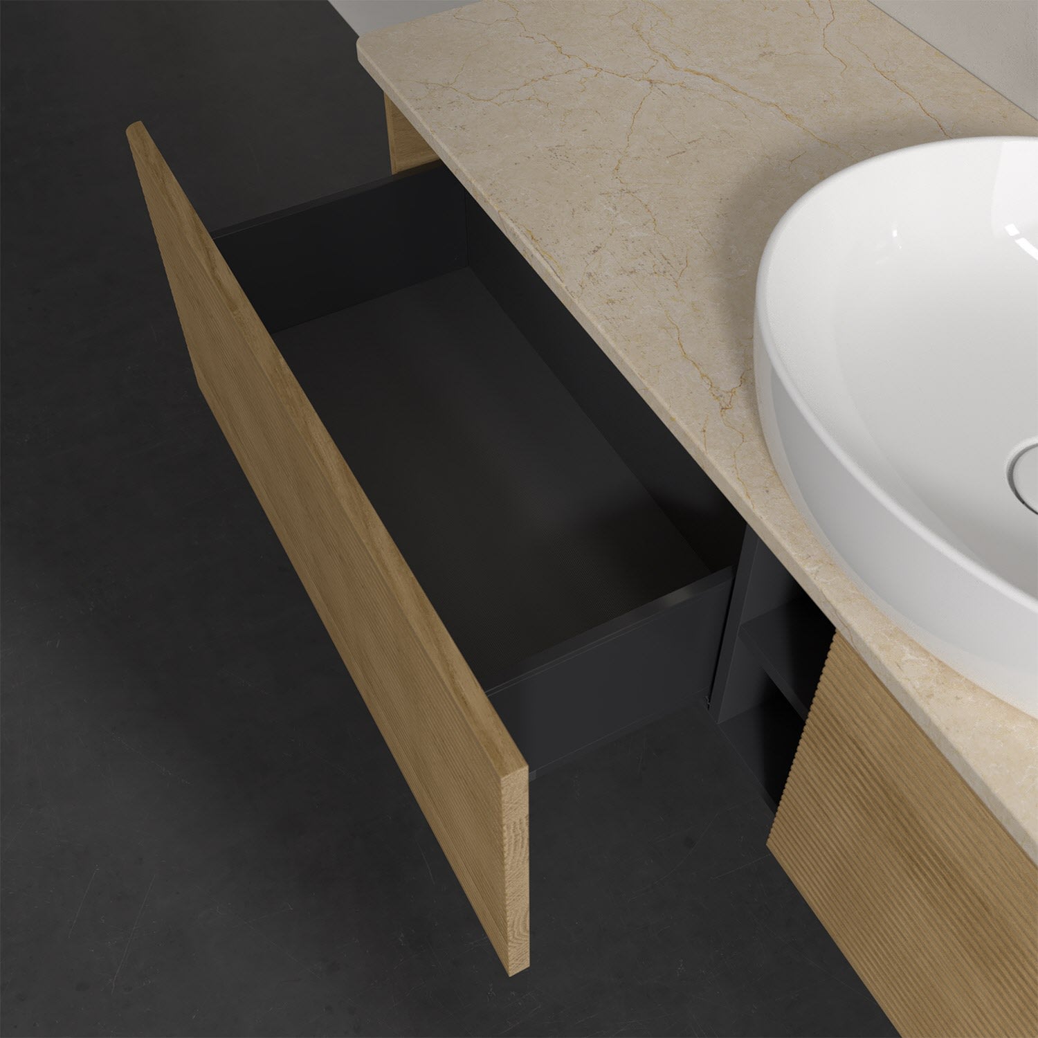 Villeroy & Boch Antao Waschbeckenunterschrank, 160 x 36 cm, 2 Auszüge mit LED-Licht, Front mit Struktur, ohne Hahnloch, für Waschtisch mittig