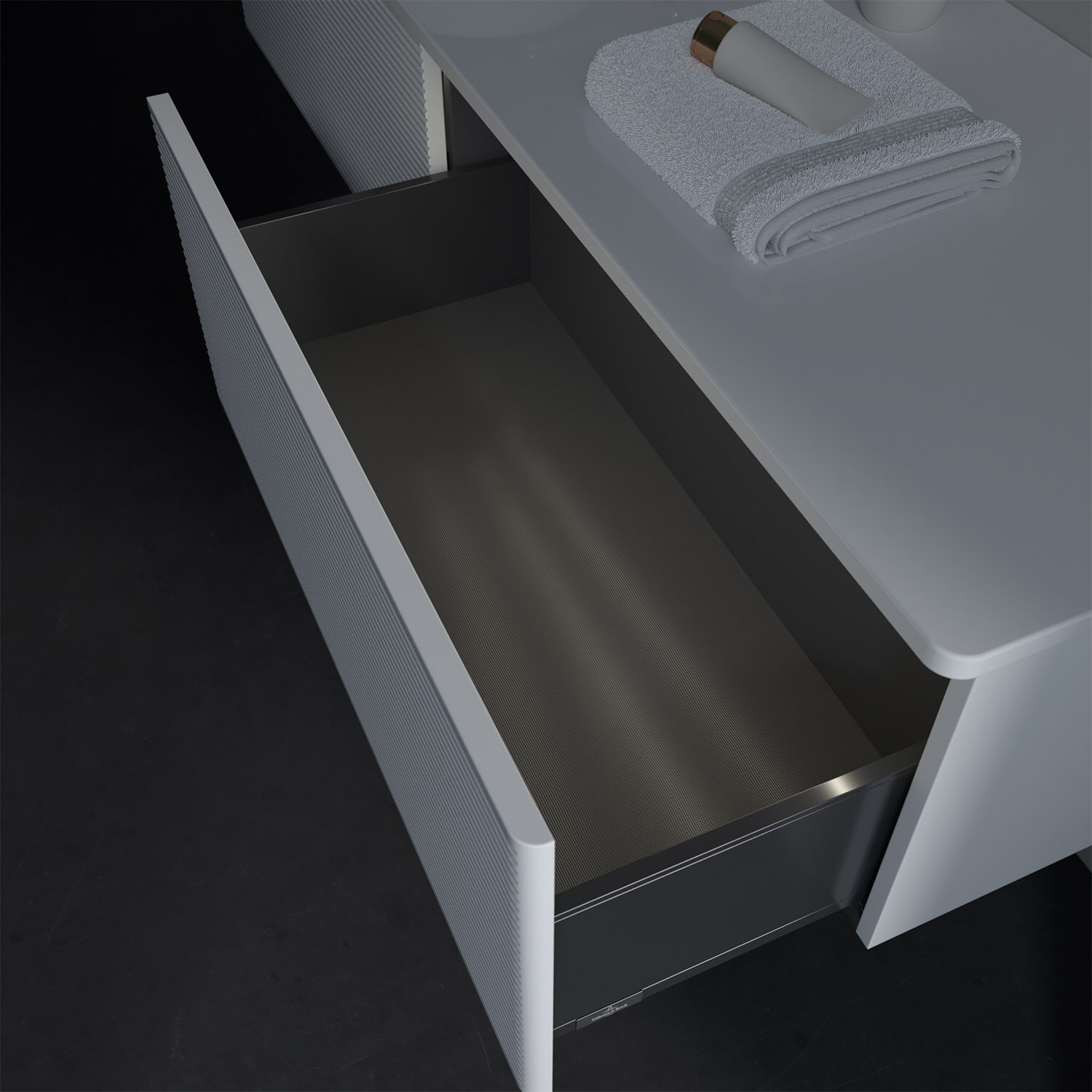 - kein Umfallen oder Verrutschen von Pflegeprodukten in den Schubladen dank rutschhemmendem Boden