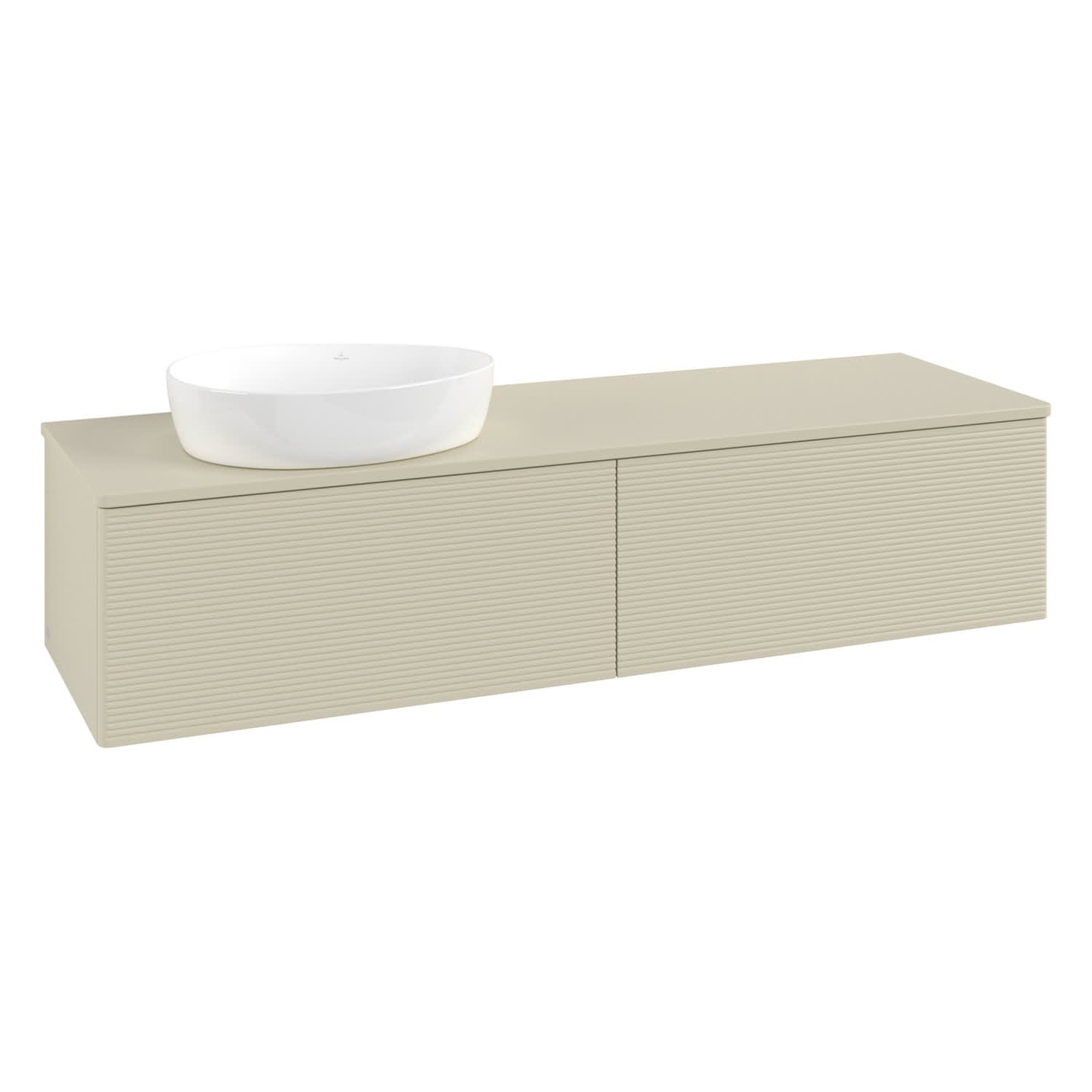 Villeroy & Boch Antao Waschbeckenunterschrank, 160 x 36 cm, 2 Auszüge mit LED-Licht, Front mit Struktur, ohne Hahnloch, für Waschtisch links
