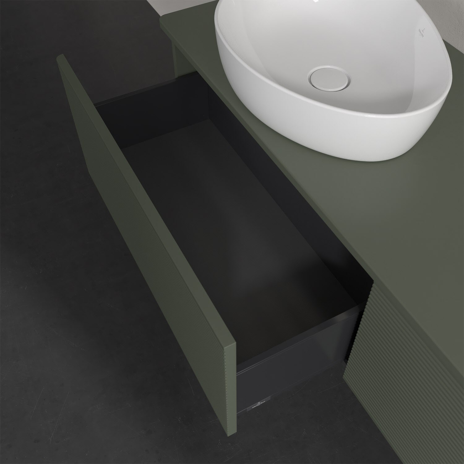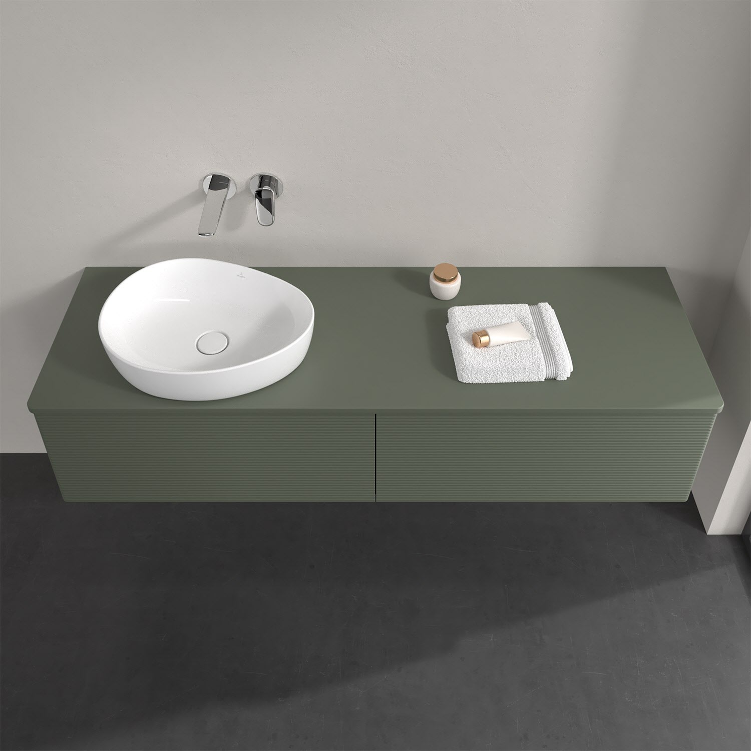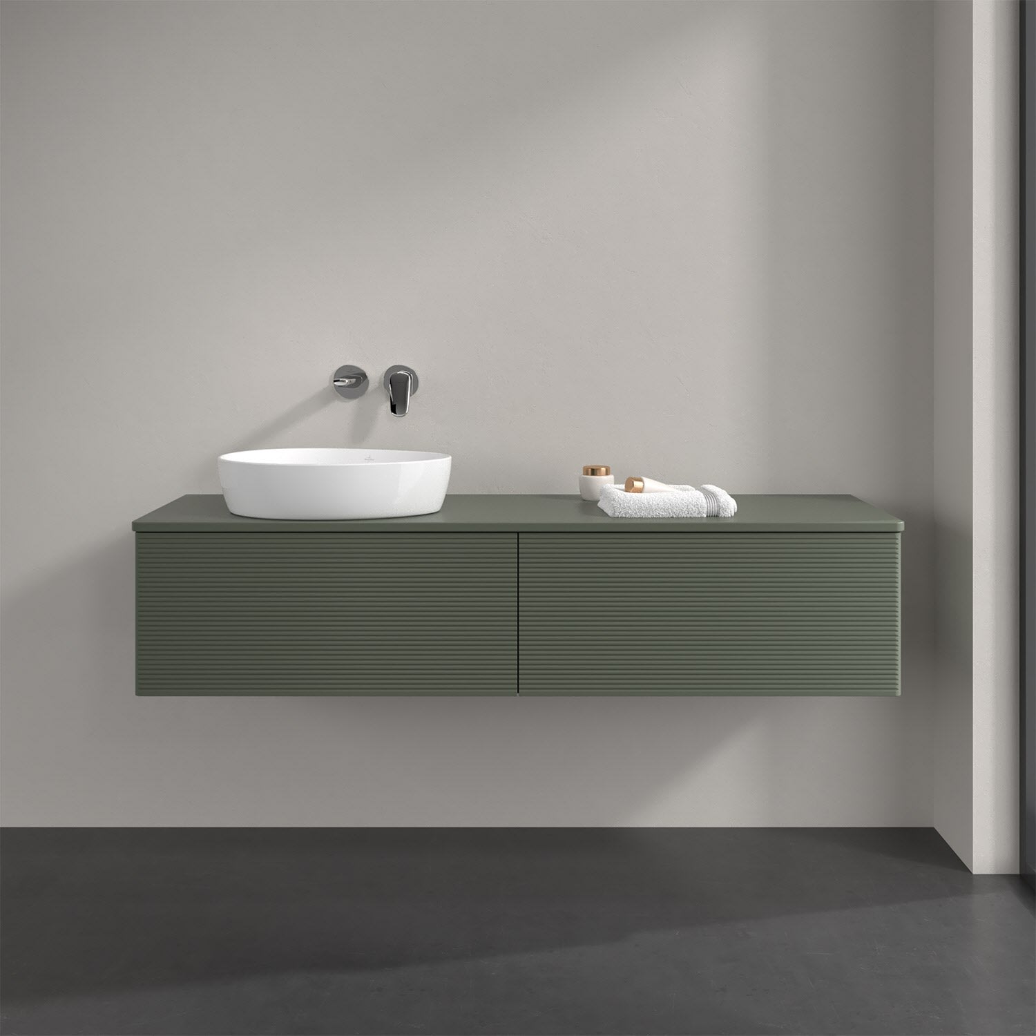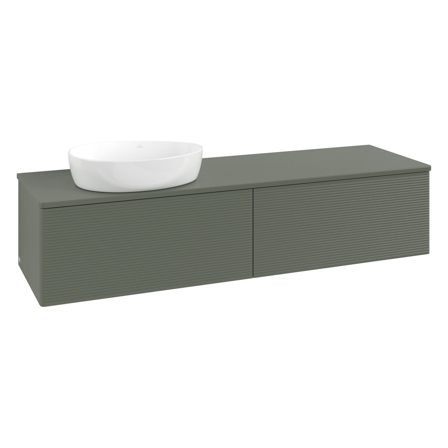 Villeroy & Boch Antao Waschbeckenunterschrank, 160 x 36 cm, 2 Auszüge mit LED-Licht, Front mit Struktur, ohne Hahnloch, für Waschtisch links