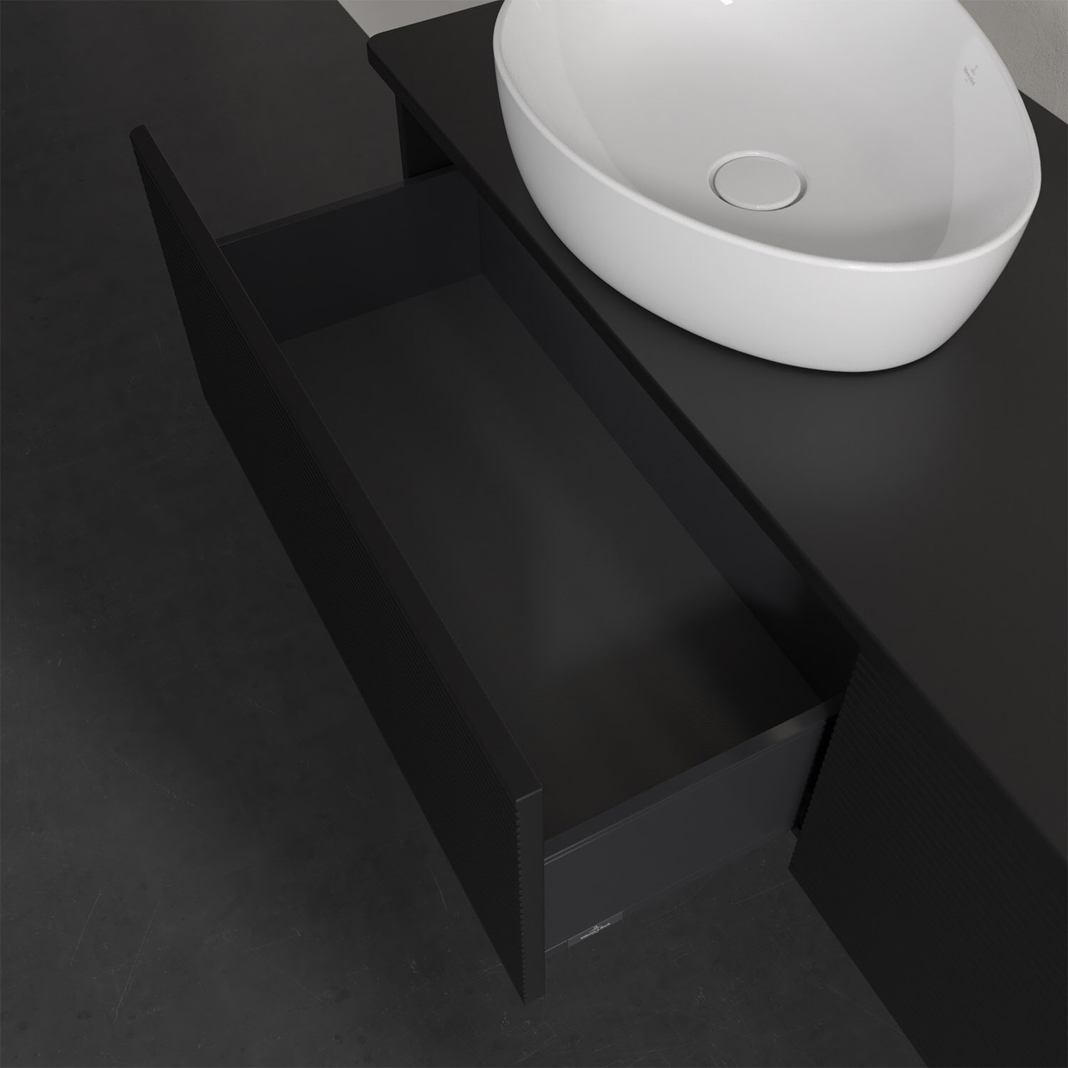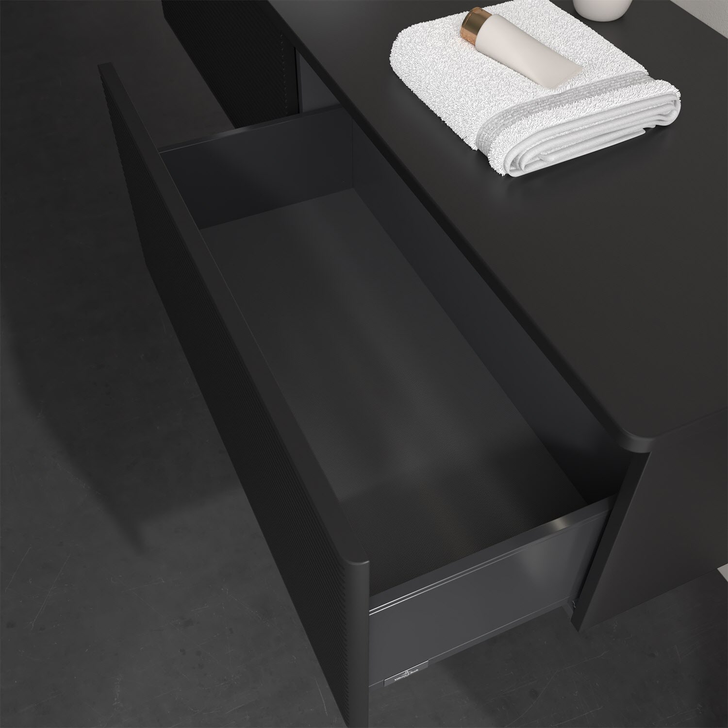 Villeroy & Boch Antao Waschbeckenunterschrank, 160 x 36 cm, 2 Auszüge mit LED-Licht, Front mit Struktur, ohne Hahnloch, für Waschtisch links
