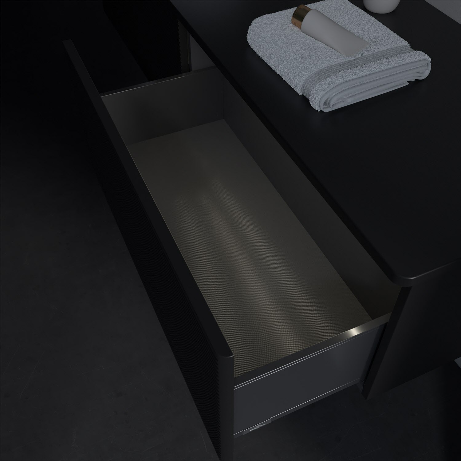 - kein Umfallen oder Verrutschen von Pflegeprodukten in den Schubladen dank rutschhemmendem Boden