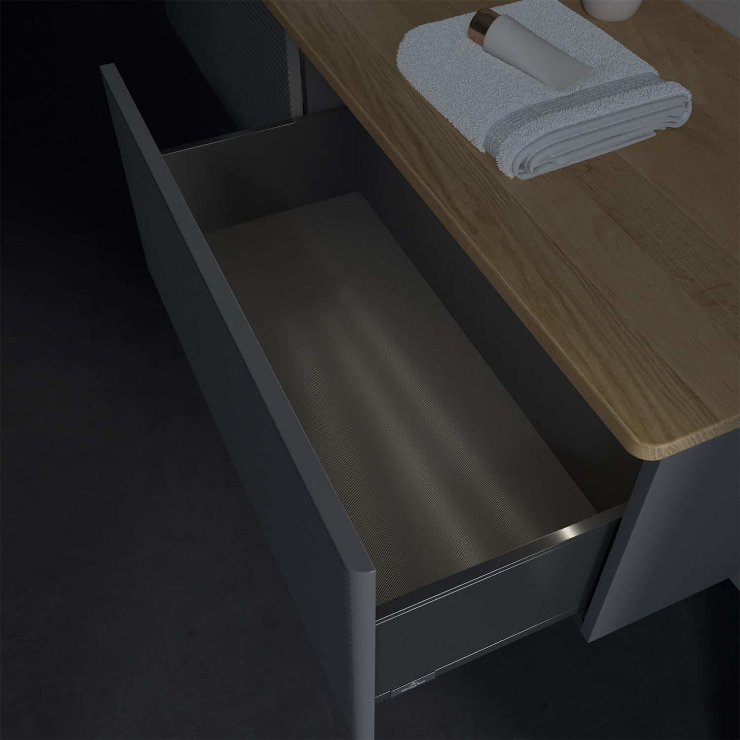 - kein Umfallen oder Verrutschen von Pflegeprodukten in den Schubladen dank rutschhemmendem Boden