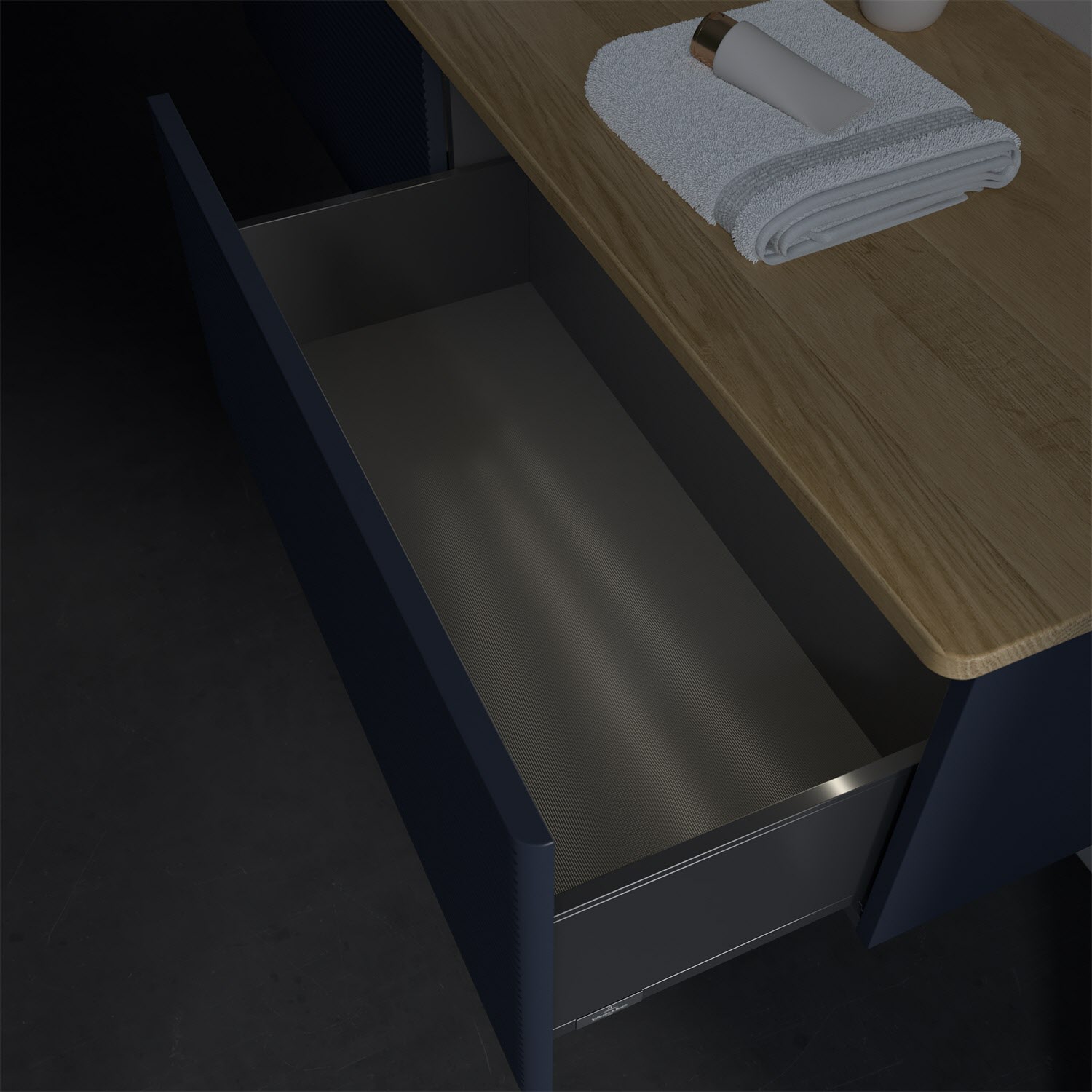 - kein Umfallen oder Verrutschen von Pflegeprodukten in den Schubladen dank rutschhemmendem Boden