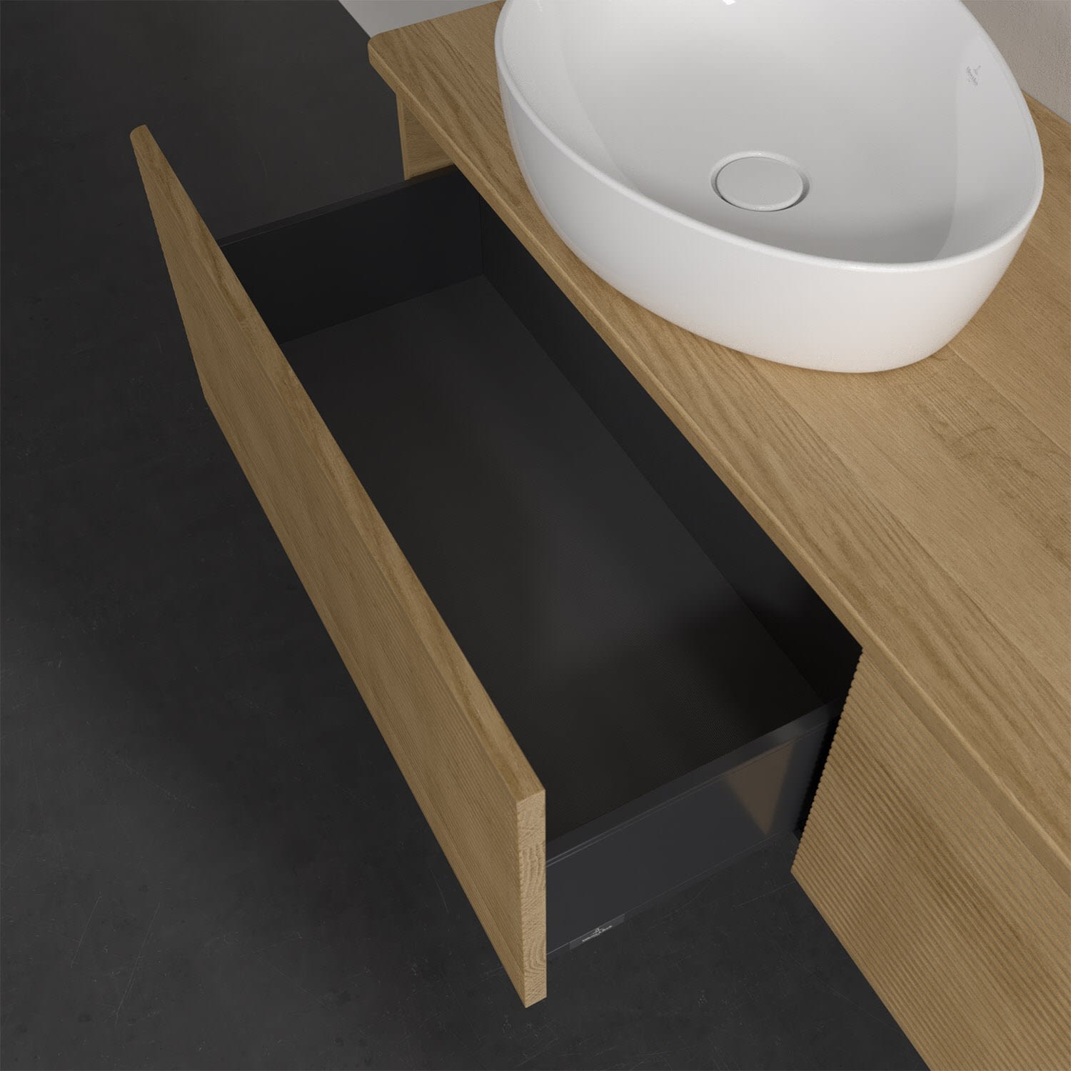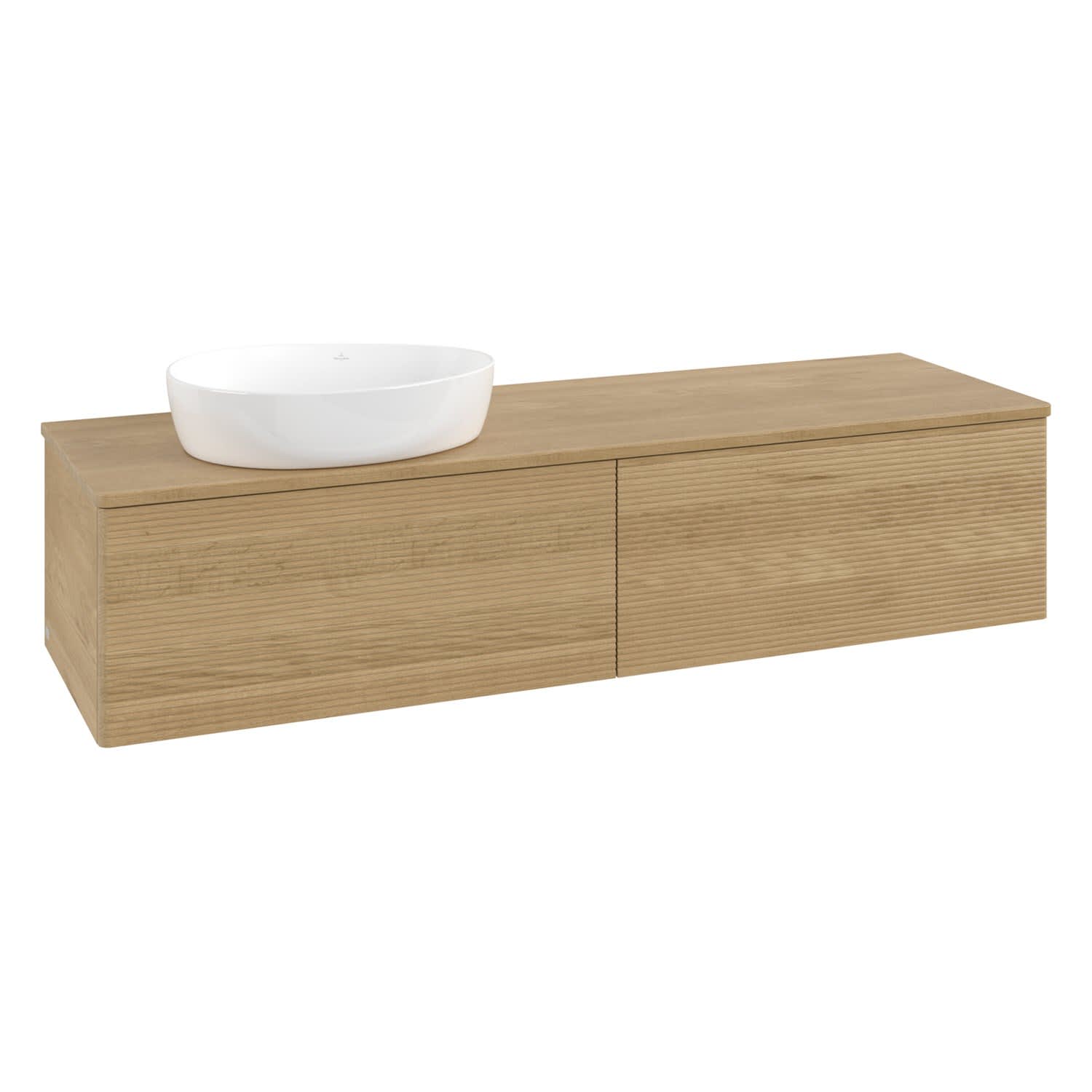 Villeroy & Boch Antao Waschbeckenunterschrank, 160 x 36 cm, 2 Auszüge mit LED-Licht, Front mit Struktur, ohne Hahnloch, für Waschtisch links