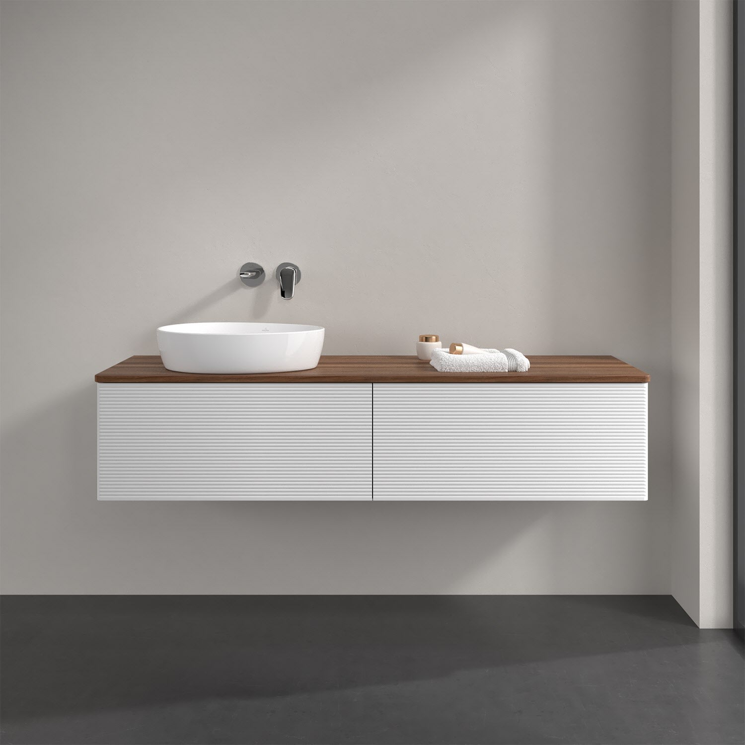 Villeroy & Boch Antao Waschbeckenunterschrank, 160 x 36 cm, 2 Auszüge mit LED-Licht, Front mit Struktur, ohne Hahnloch, für Waschtisch links