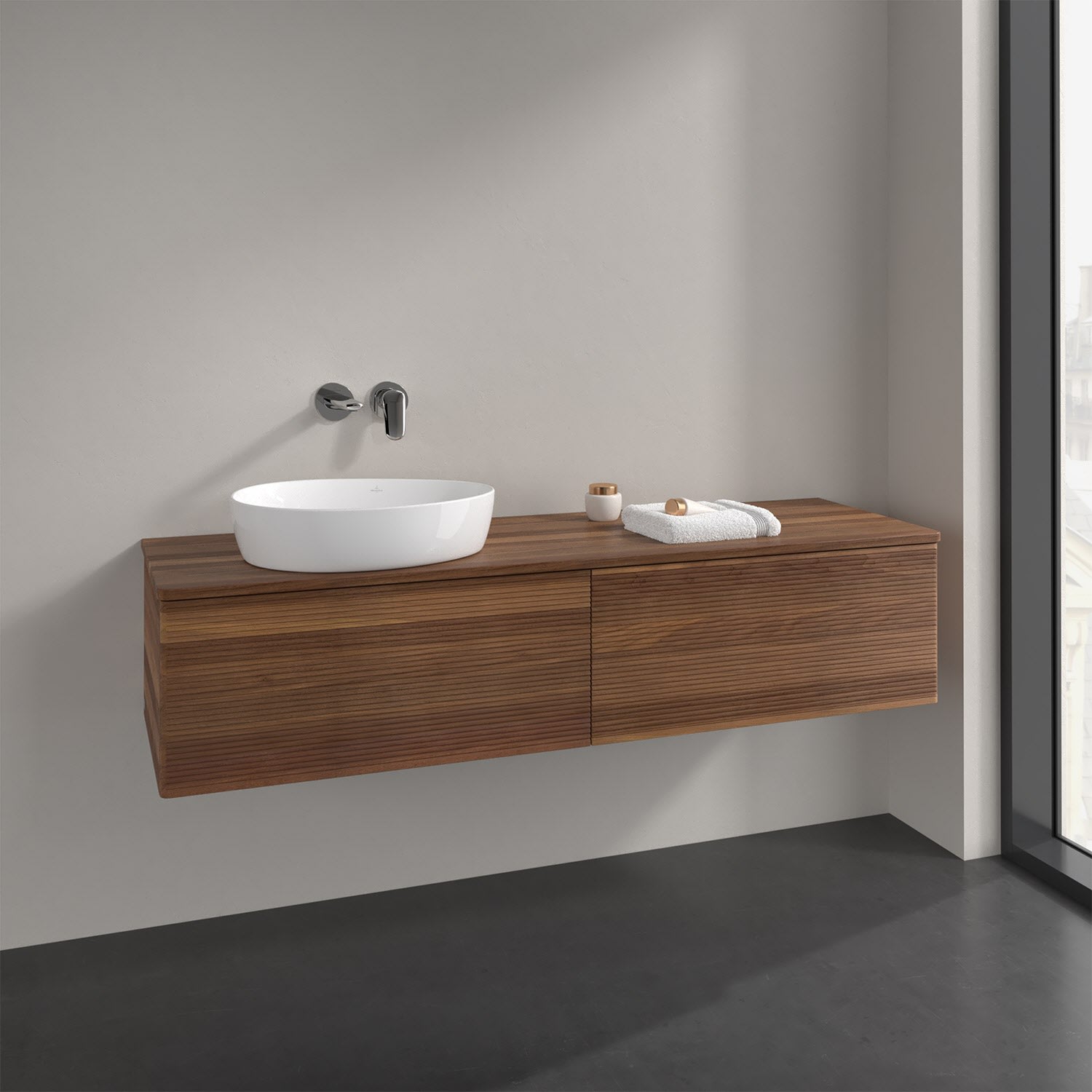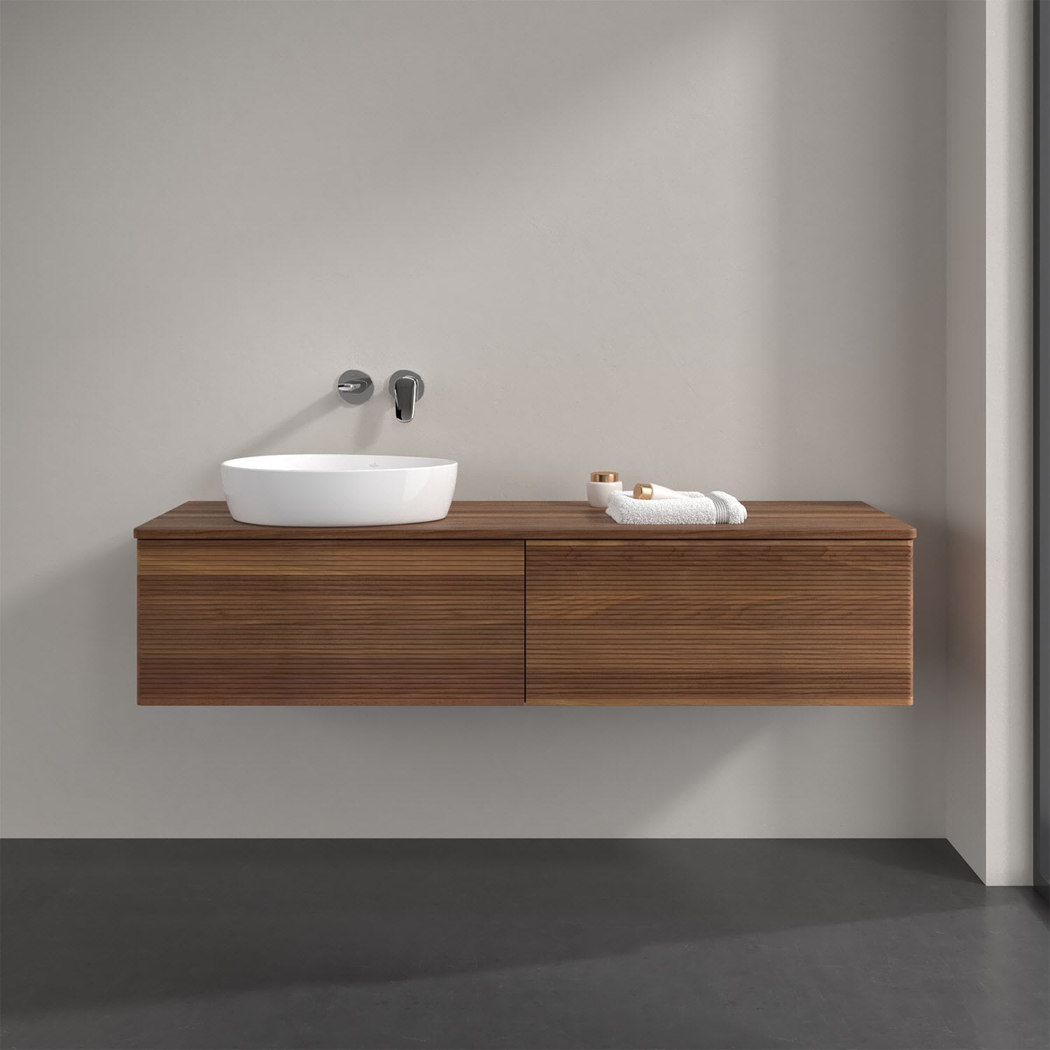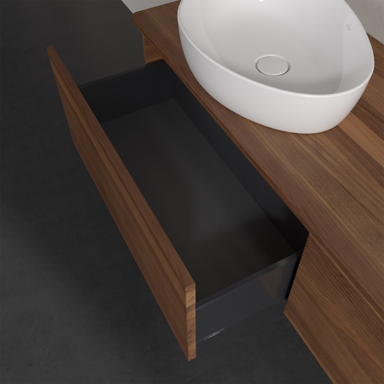 Villeroy & Boch Antao Waschbeckenunterschrank, 160 x 36 cm, 2 Auszüge mit LED-Licht, Front mit Struktur, ohne Hahnloch, für Waschtisch links