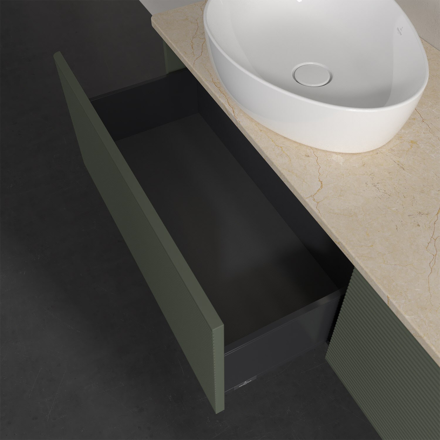 Für diesen Waschbeckenunterschrank stehen Ihnen Aufsatzwaschtische aus verschiedenen Serien zur Verfügung (siehe "Passliste" unter Downloads). Ein ausgewähltes Beispiel finden Sie im Zubehör. Den Waschtisch bitte separat mitbestellen.