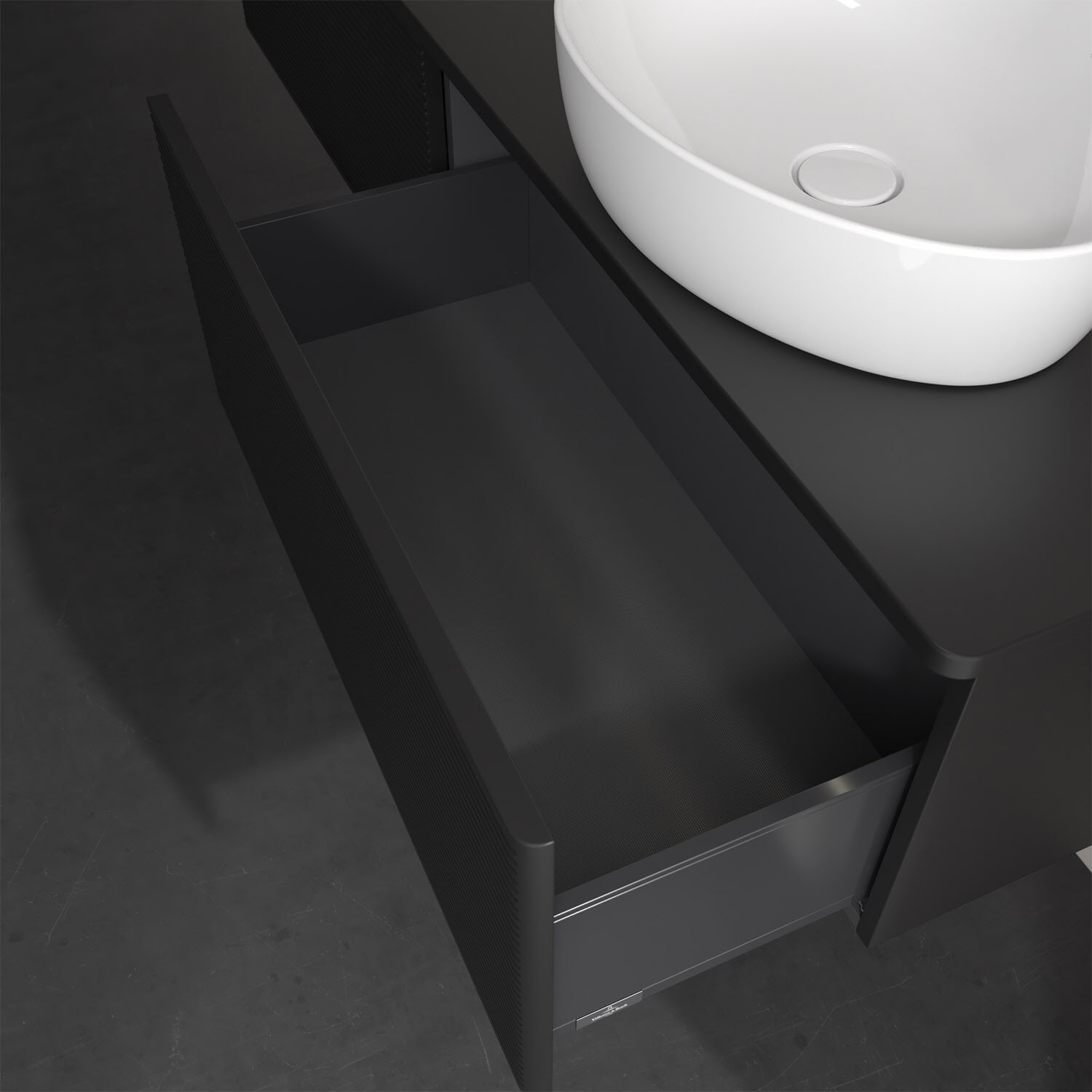 Villeroy & Boch Antao Waschbeckenunterschrank, 160 x 36 cm, 2 Auszüge mit LED-Licht, Front mit Struktur, ohne Hahnloch, für Waschtisch rechts