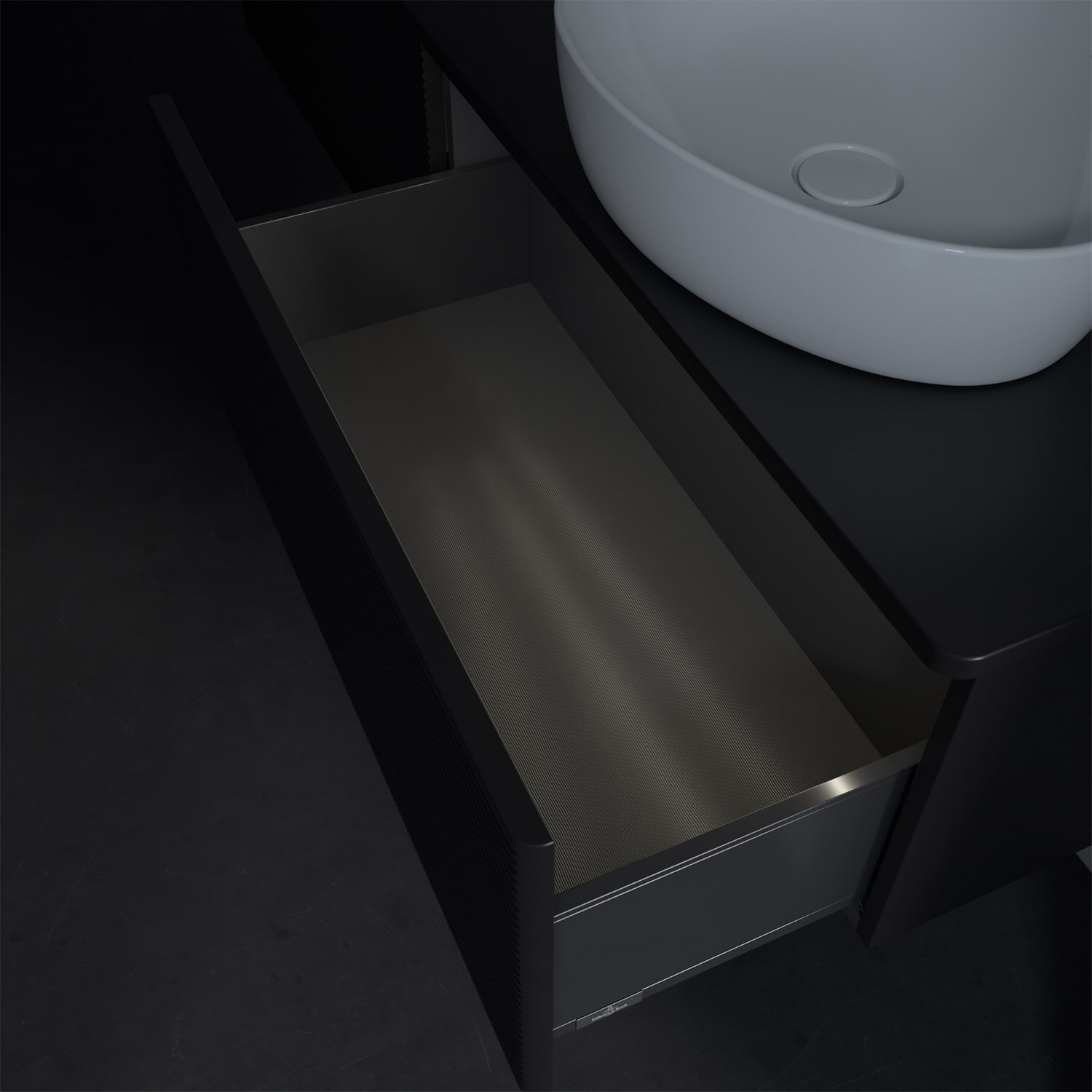 - kein Umfallen oder Verrutschen von Pflegeprodukten in den Schubladen dank rutschhemmendem Boden